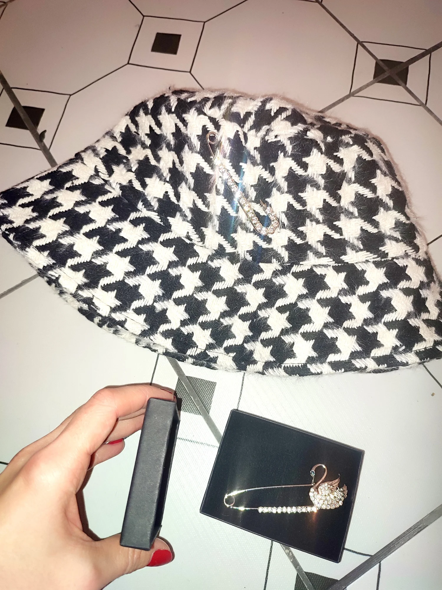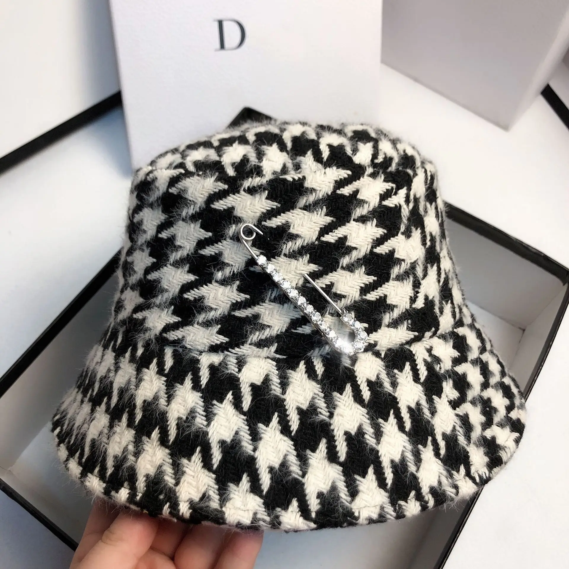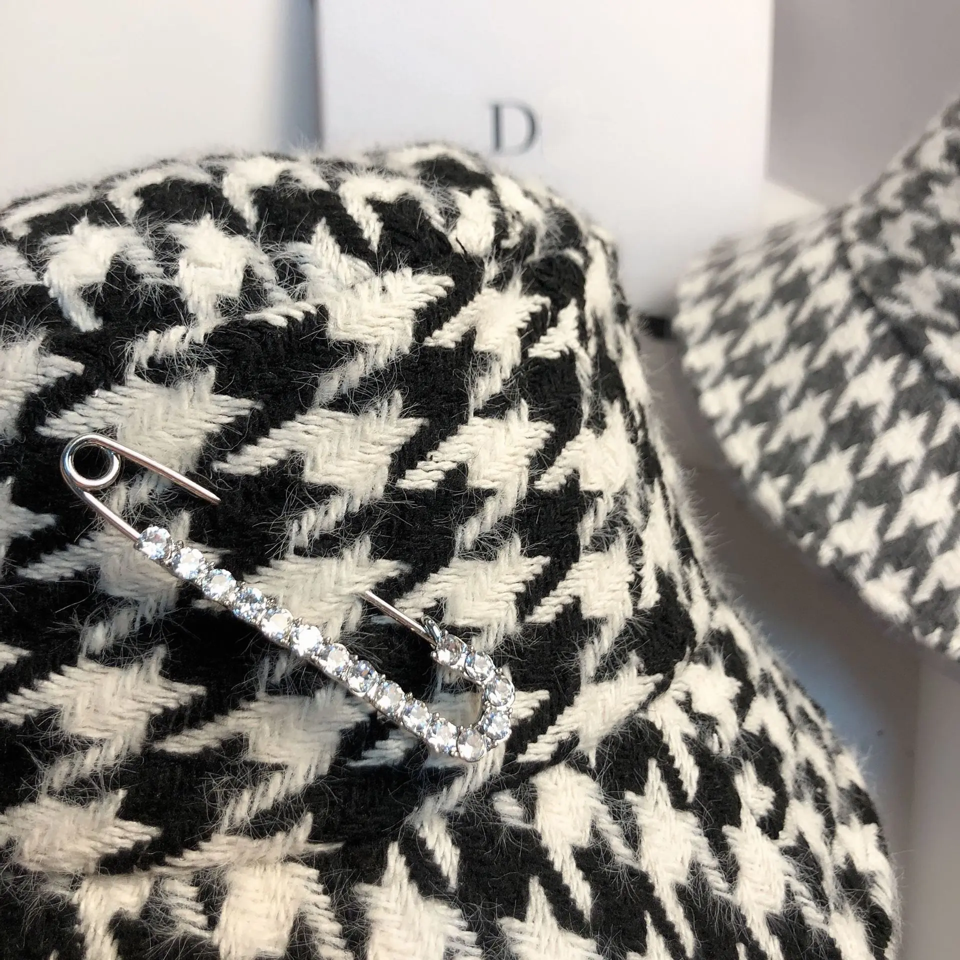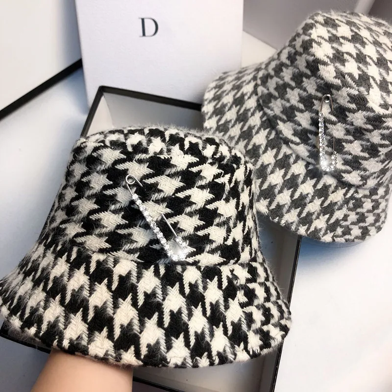 Женская панама в клетку с рисунком гусиные лапки