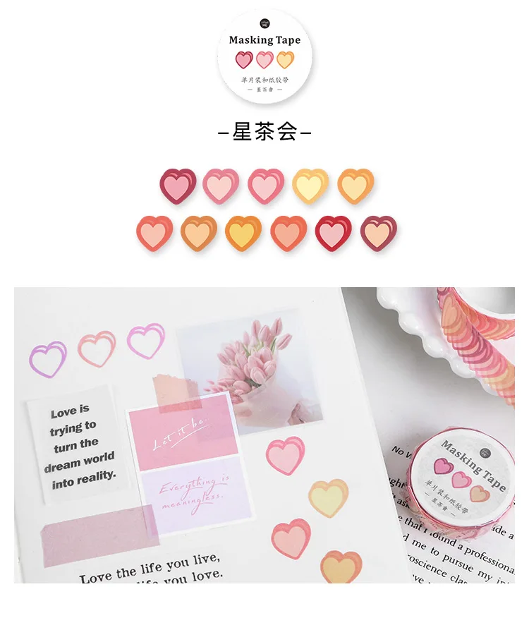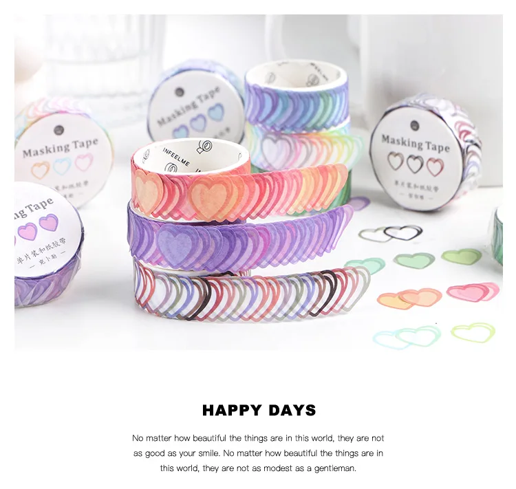 Journamm 100 шт Красочные любящее сердце одной ленты Каваий Deco Washi ленты детского подарка Скрапбукинг Kawaii Декоративные Канцелярские Ленты