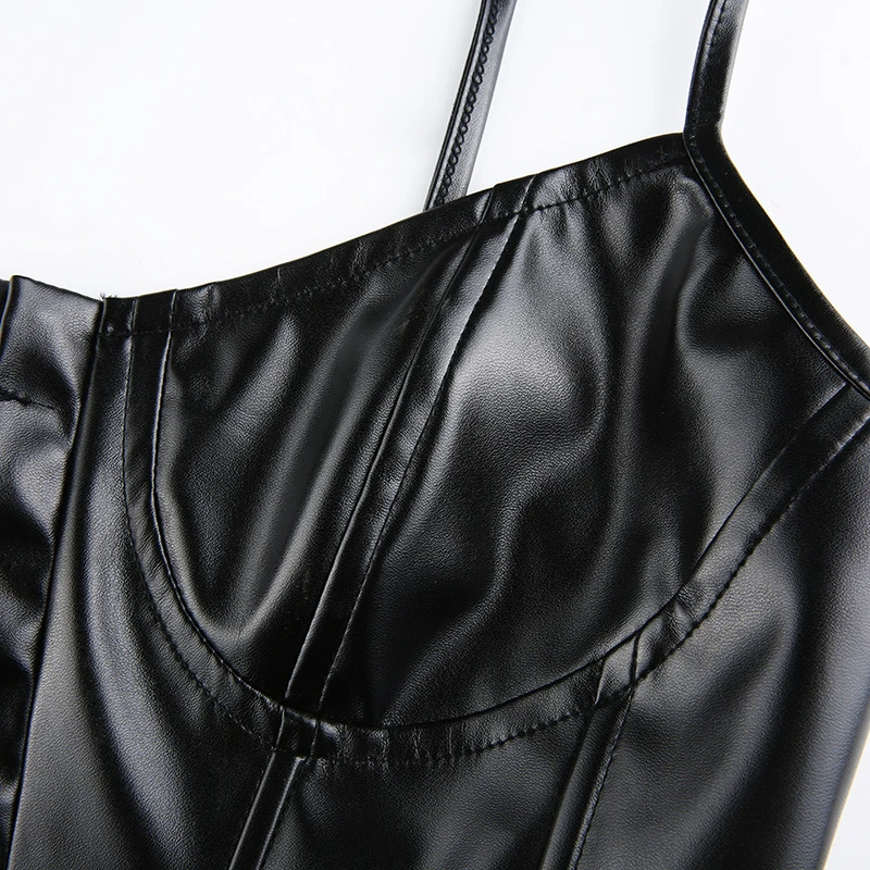 Женский топ-бюстье без рукавов, кожаный топ-майка, укороченный секс...