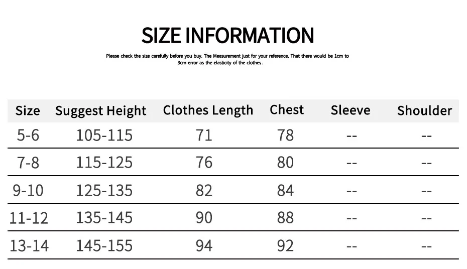 2. Пожалуйста, внимательно изучите таблицу размеров перед покупкой товара.