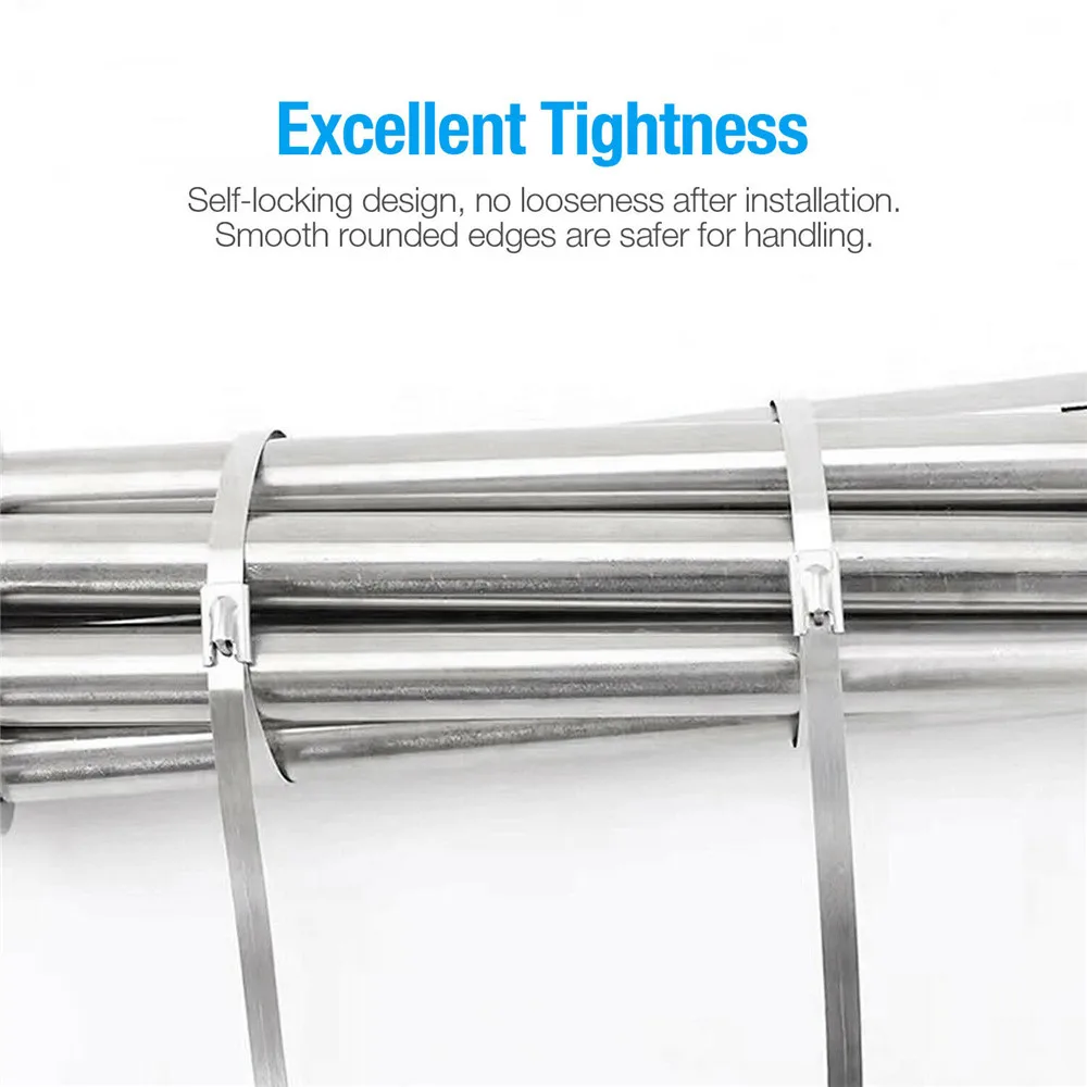 Кабельные стяжки из нержавеющей стали, 100 мм, 304 шт., 4,6 #, сверхпрочные самоблокирующиеся, многоцелевые, металлические, для выхлопных газов