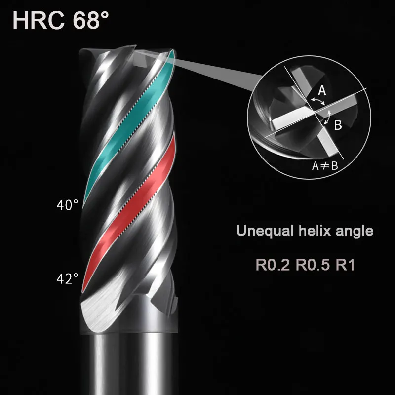 Твердосплавные фрезы для металлических фрез с 4 канавками R0.2/R0.5/R1mm из вольфрамовой стали высокой твердости