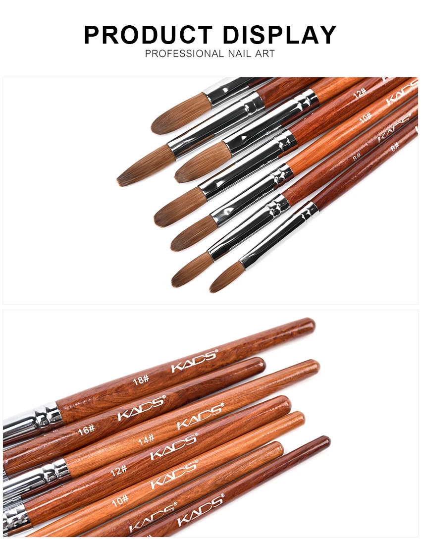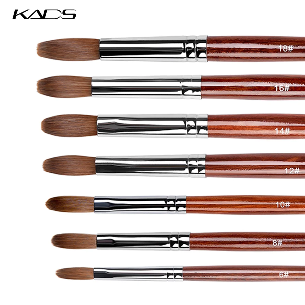 Kads акриловая кисточка для ногтей Kolinsky для пудра для ногтей гофрированная круглая Красная деревянная ручка профессиональный инструмент маникюрные щетки