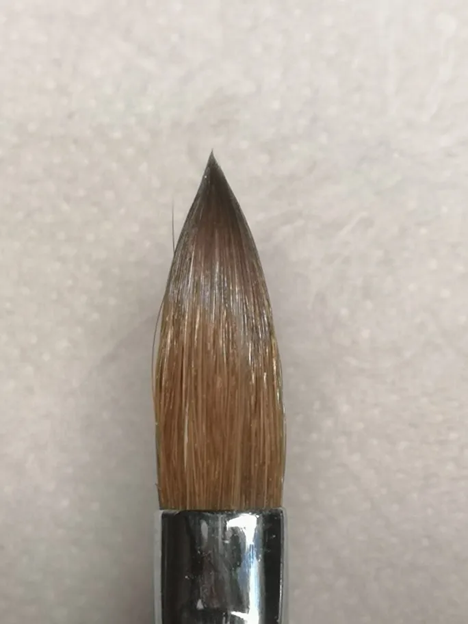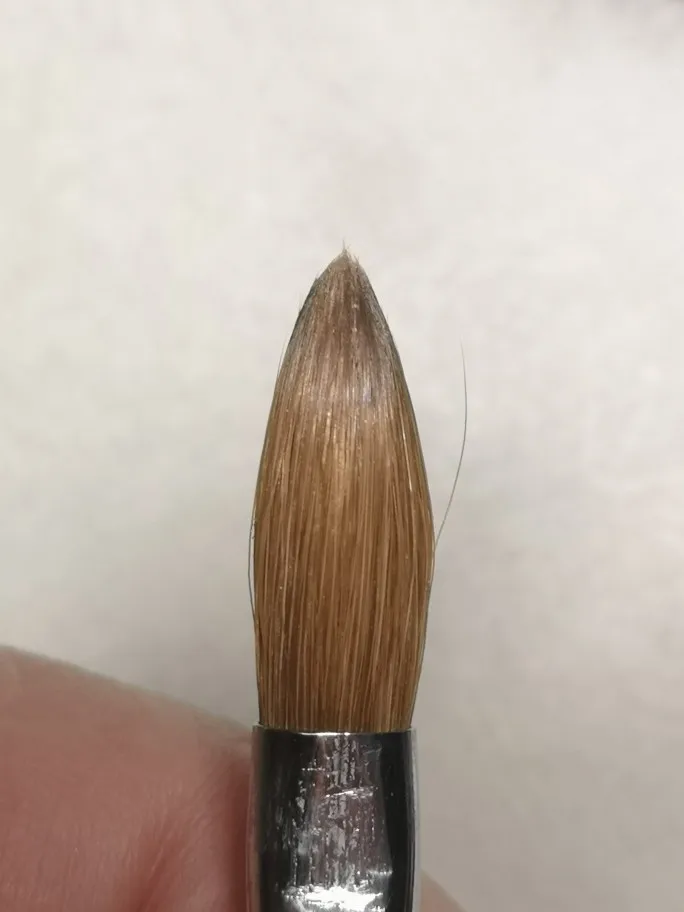 Не настоящая колинская кисть. Кисточка быстро застревает акрилом, и кисть теряет блеск сразу после первого использования.