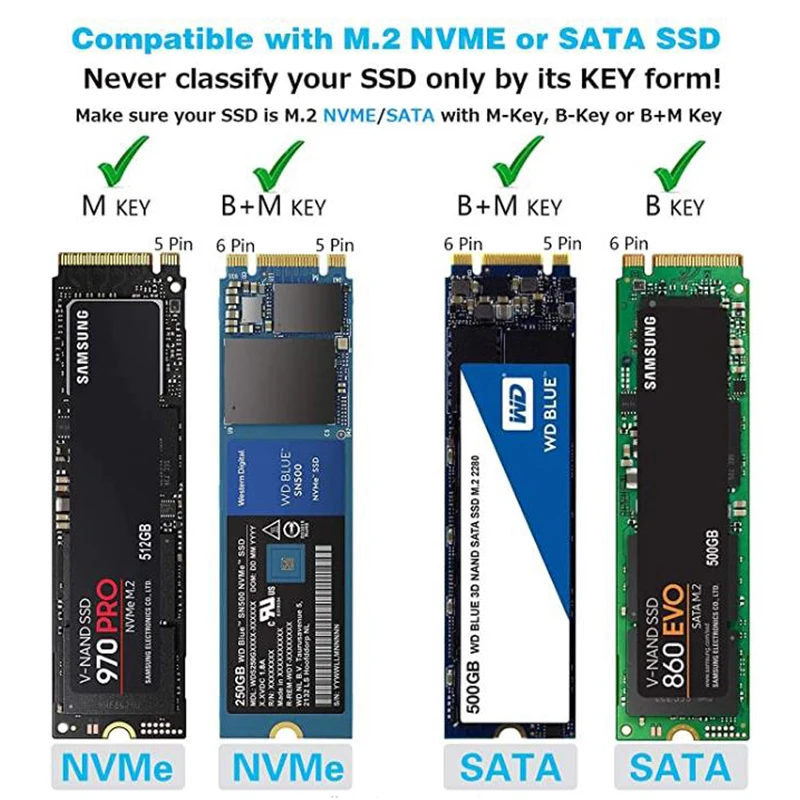 Тип USB C SSD корпус M2 SSD Чехол Коробка внешний жесткий диск чехол для M.2 NGFF NVME SATA M/B Ключ жесткий диск чехол Realtek RTL9210B