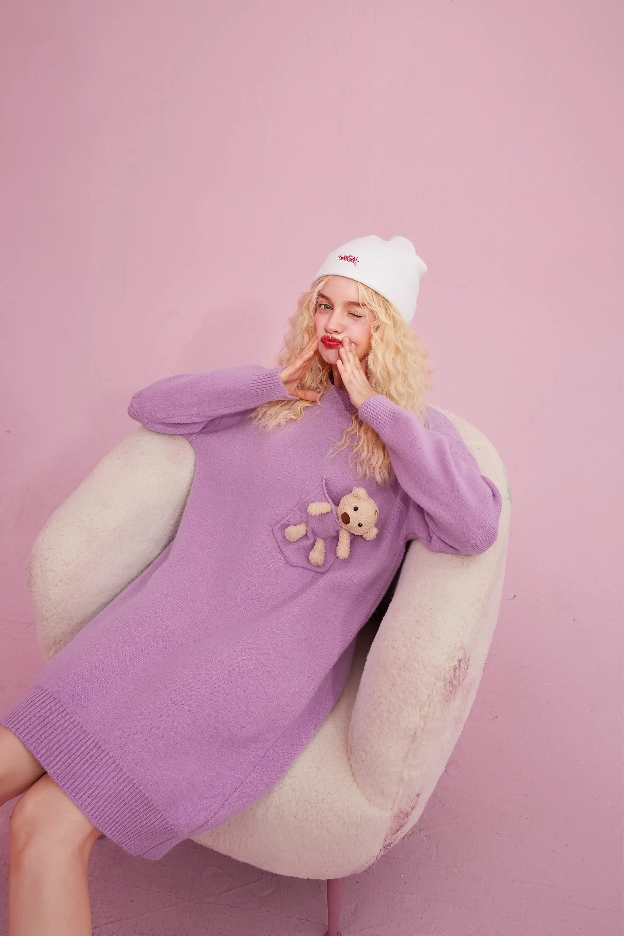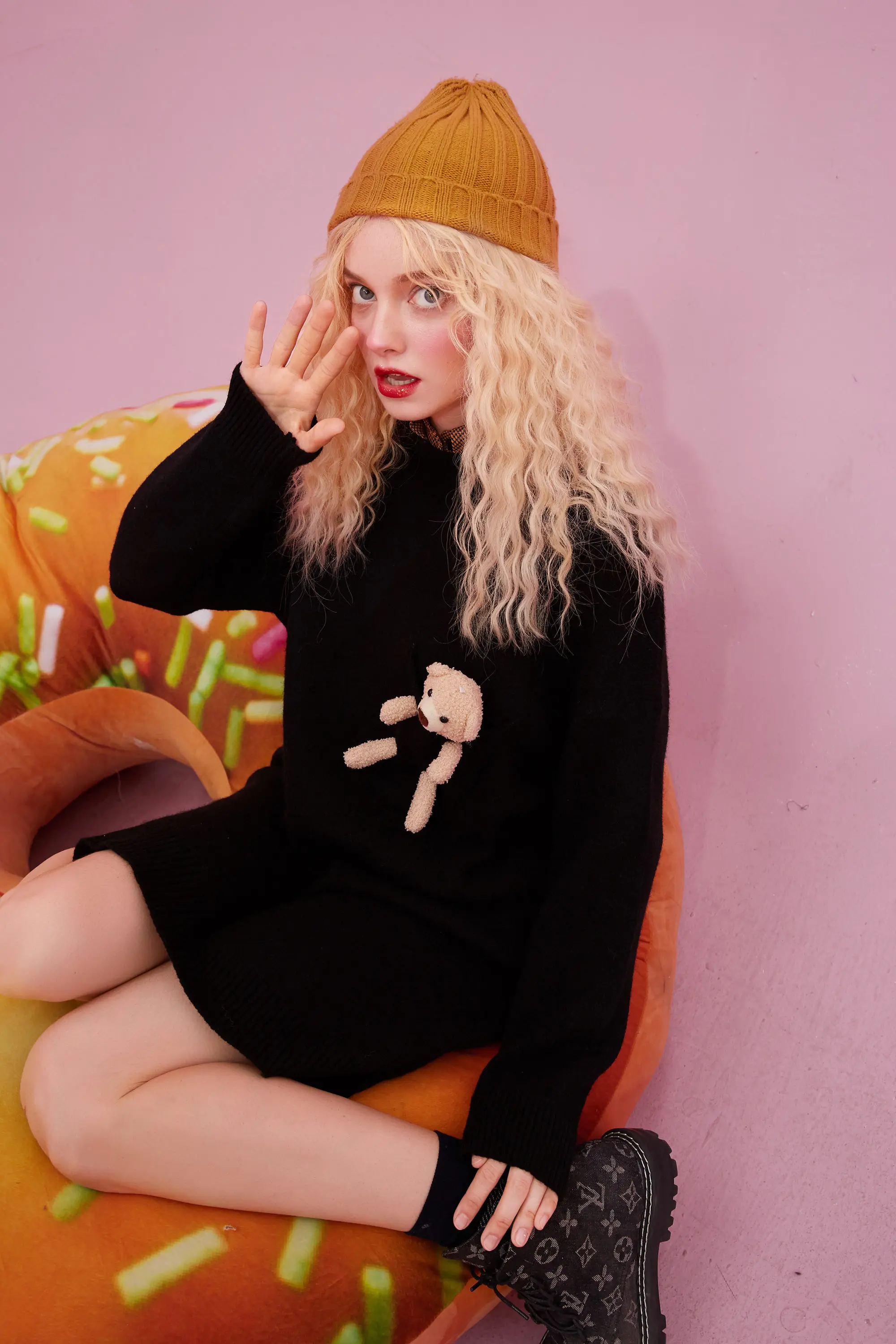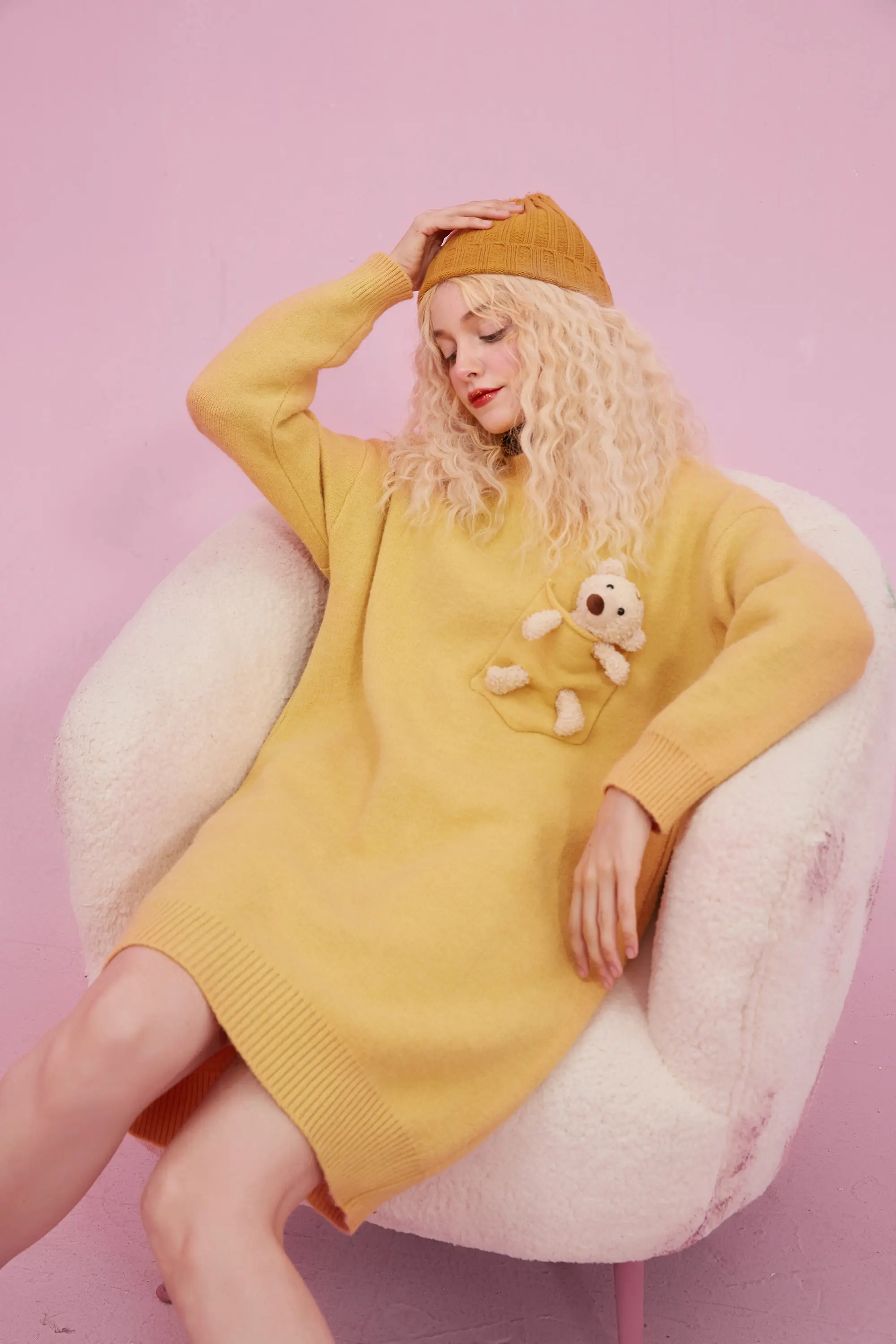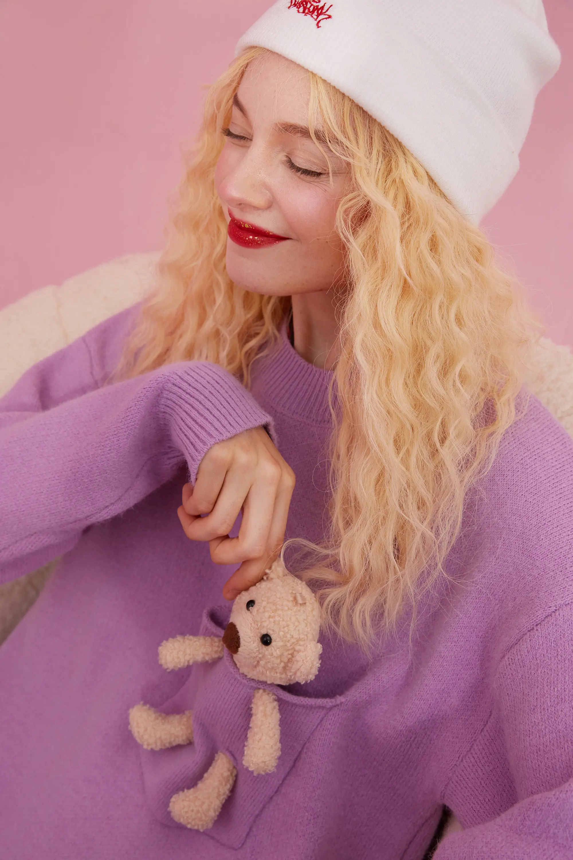 Женский Повседневный пуловер ELFSACK, однотонный пуловер с длинными рукавами и рисунком медведя, вязаные свитера, осень 2020, повседневные милые топы ELF в Корейском стиле