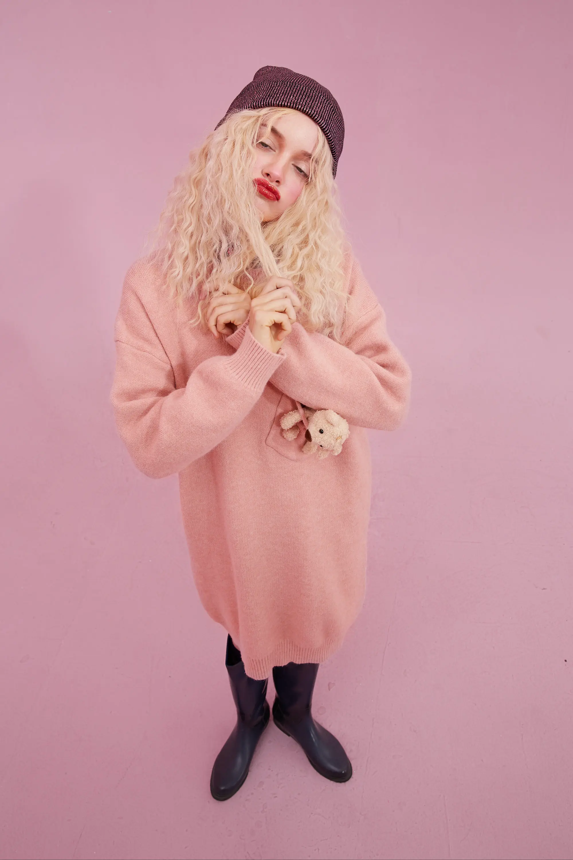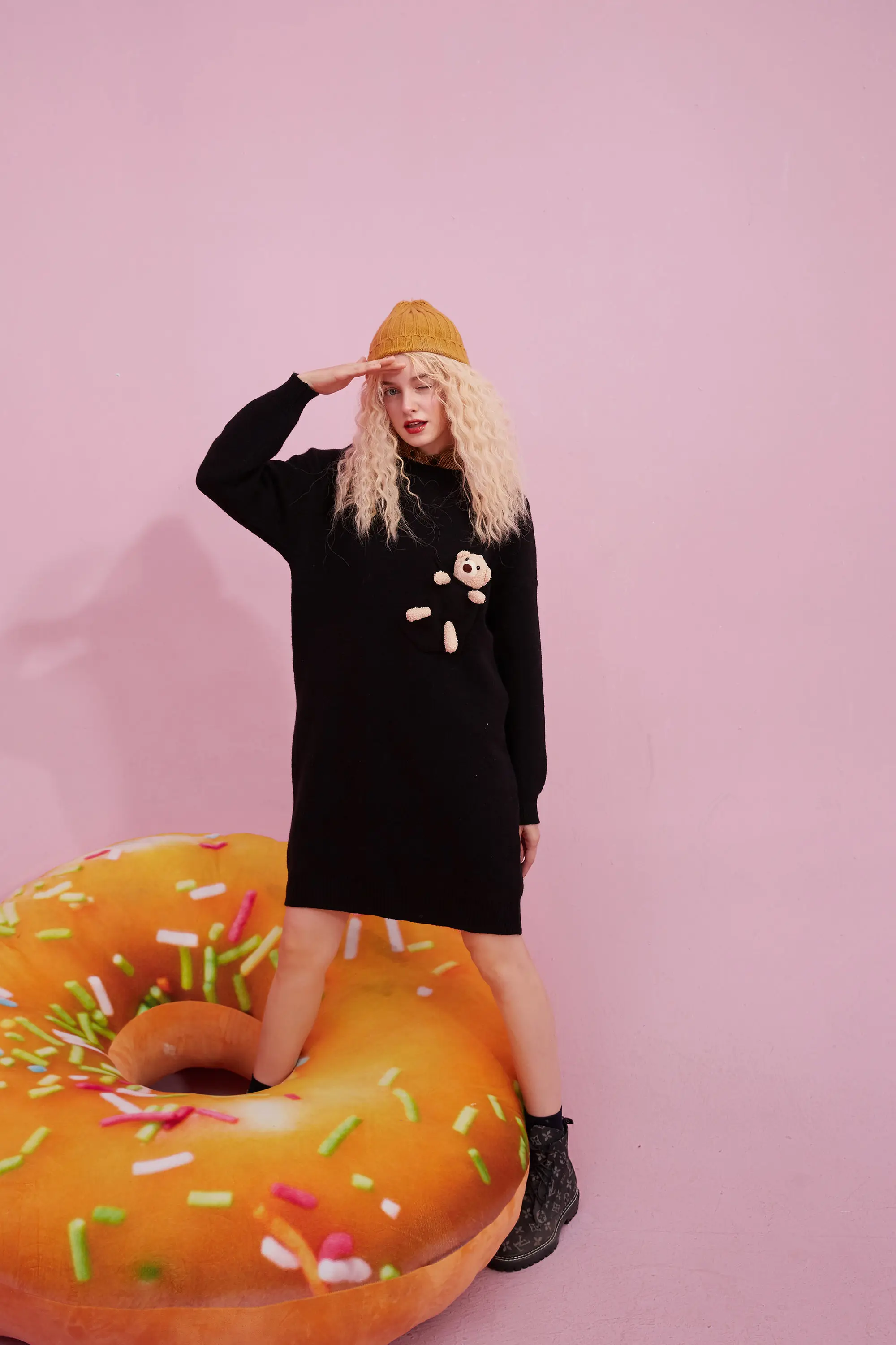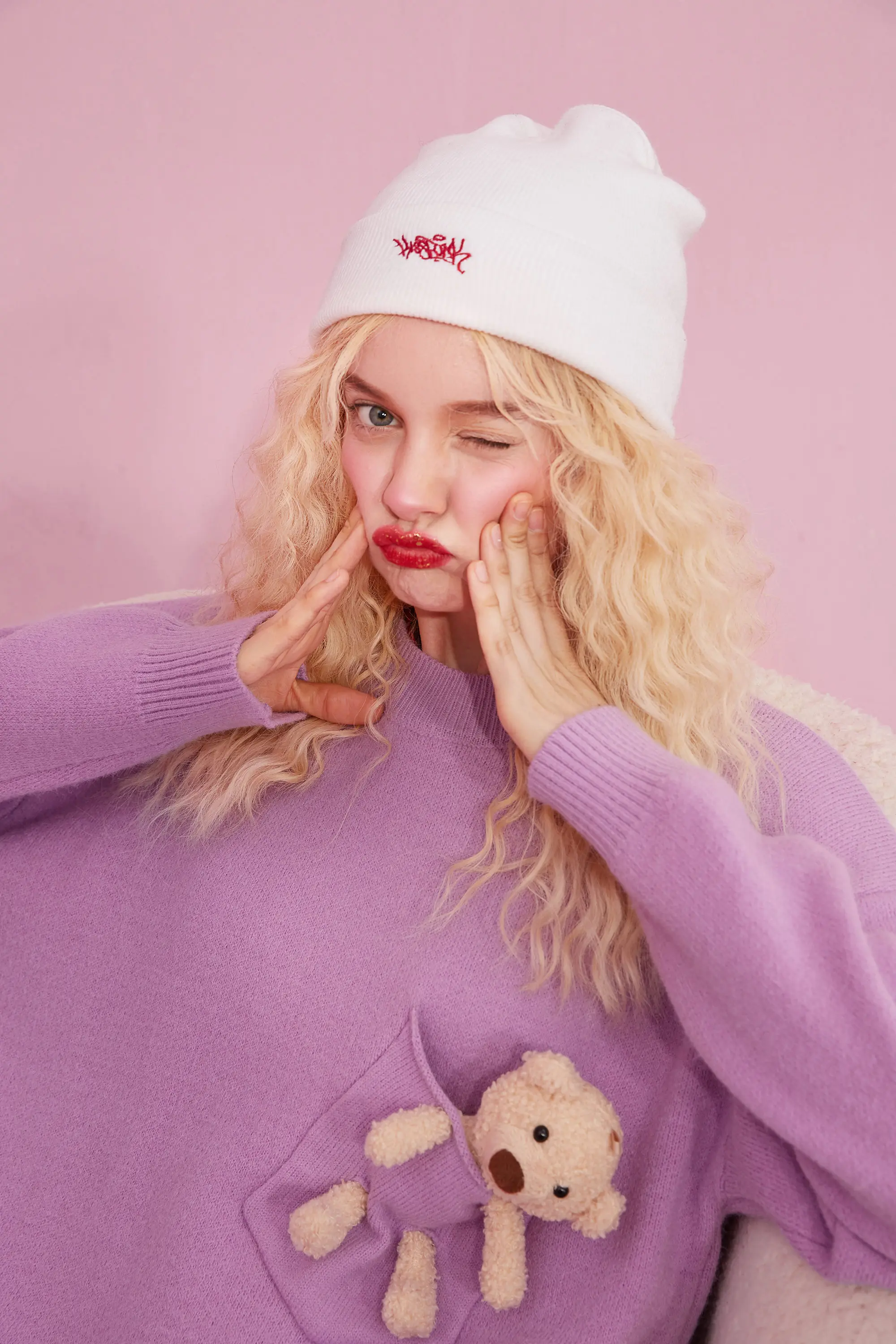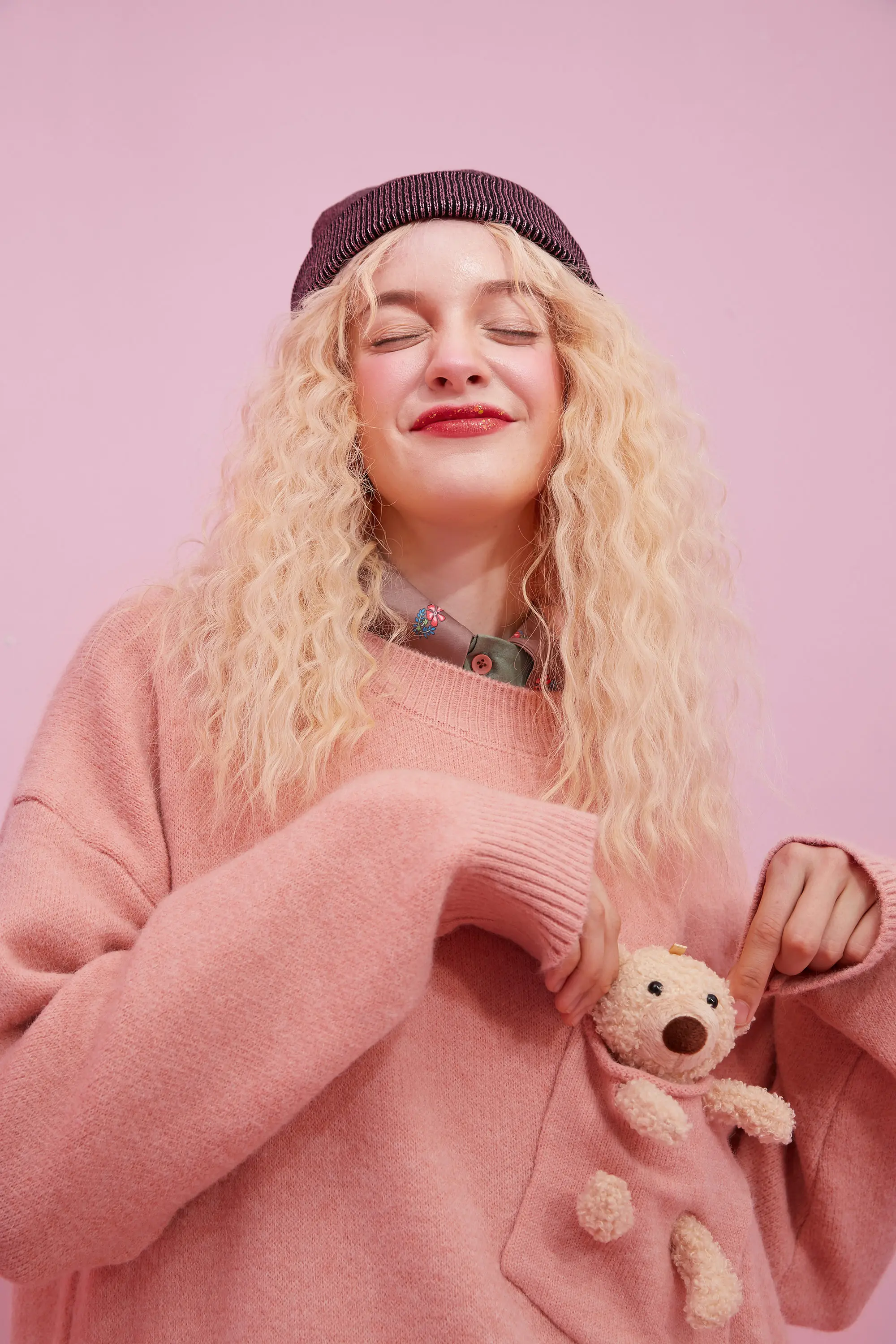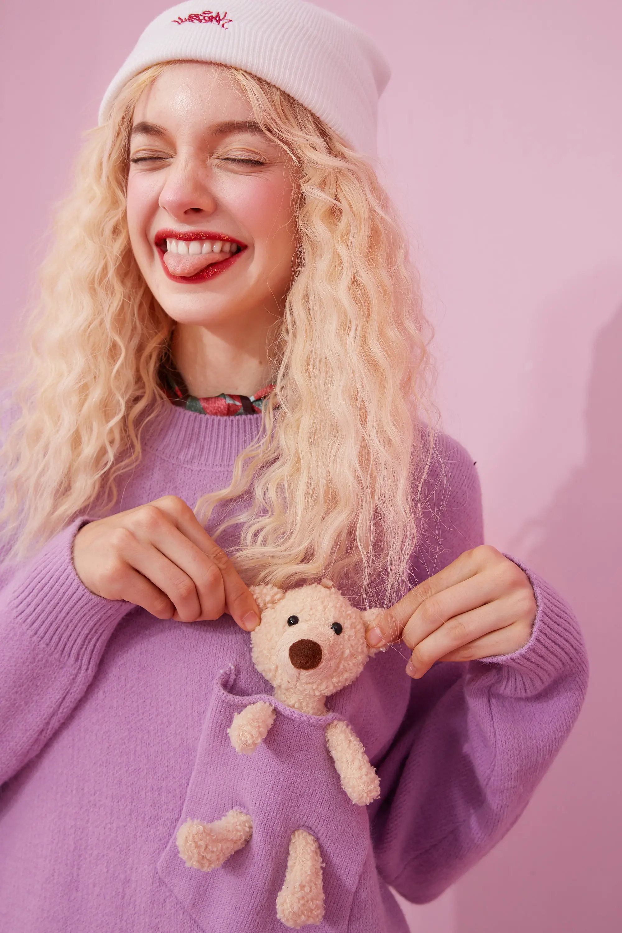 Женский Повседневный пуловер ELFSACK, однотонный пуловер с длинными рукавами и рисунком медведя, вязаные свитера, осень 2020, повседневные милые топы ELF в Корейском стиле