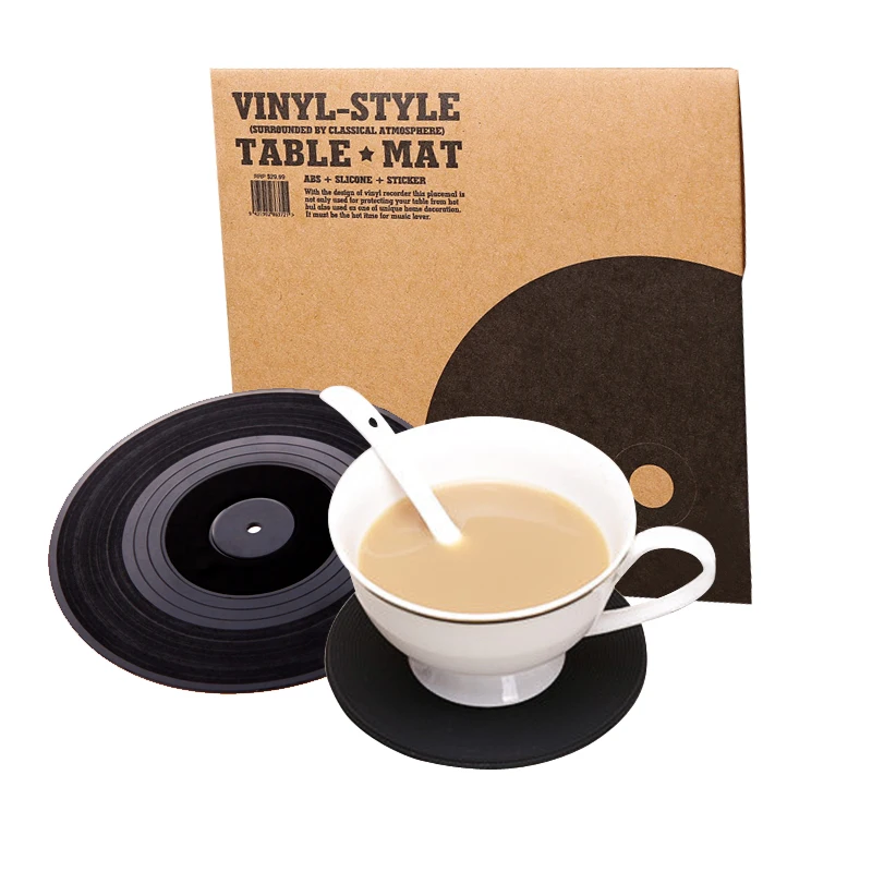 Музыкальные виниловые пластинки, коврик для кофе, подставка под кру...