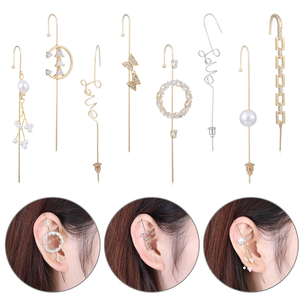 Новый гусеничный крючки для сережек с украшением в виде кристаллов циркония манжета с жемчужной сережки-гвоздики для женщин Свадебные ювелирные изделия с геометрическим узором молния Крест панк в богемном стиле