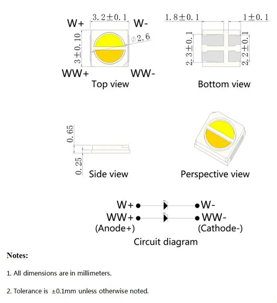 3030 3 в 1 Вт smd светодиодный белыйтеплый белый 2in1 3030 светодиодный двойной цветовая температура SMD СВЕТОДИОДНЫЙ заполняющий светильник