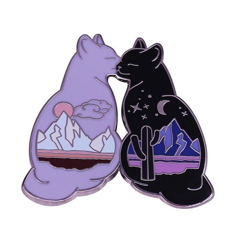 Эмалированная заколка для целующихся кошек, день и ночь, Инь Янь, интерьер пустыни, небесный Кот, любимый день Святого Валентина, романтический подарок