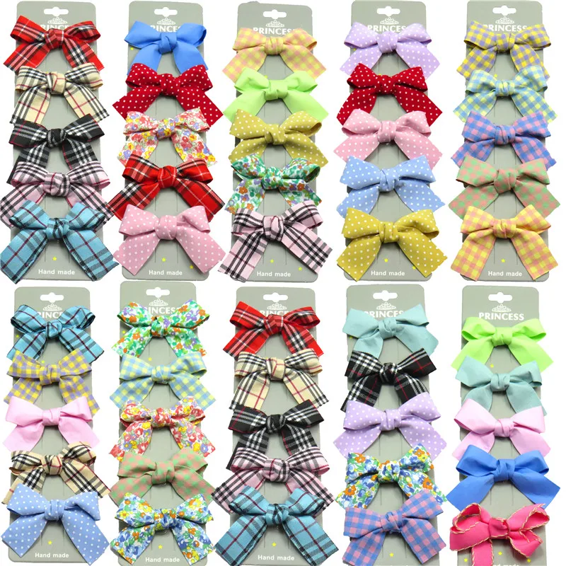 Милые однотонные заколки в виде сетки для девочек, 10 шт.2 карточки, Детский галстук-бабочка, креативные заколки ручной работы, модные аксессуары для волос для детей