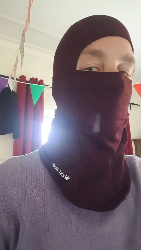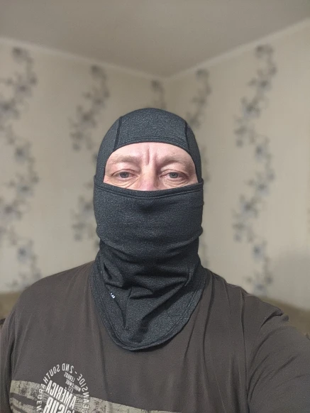 Отличный подшлемник на холодную погоду. Главное закрывает шею. И к телу очень приятная.