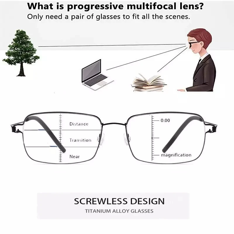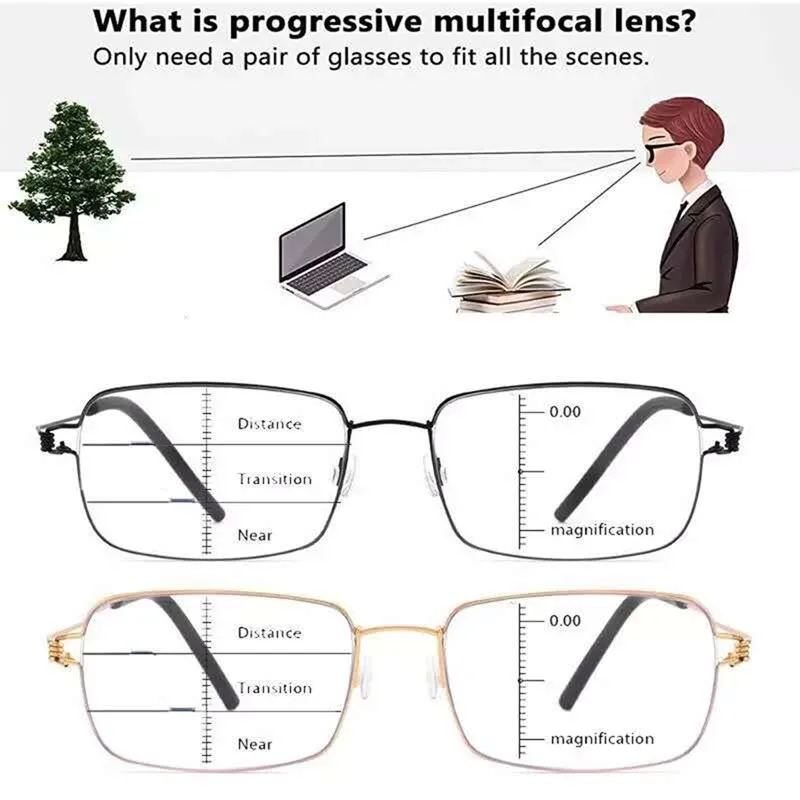 Новые прогрессивные многофокусные очки для чтения из титанового спл...