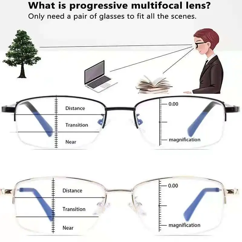 Титановый сплав мужские прогрессивные мульти-фокус анти-синие очки ...