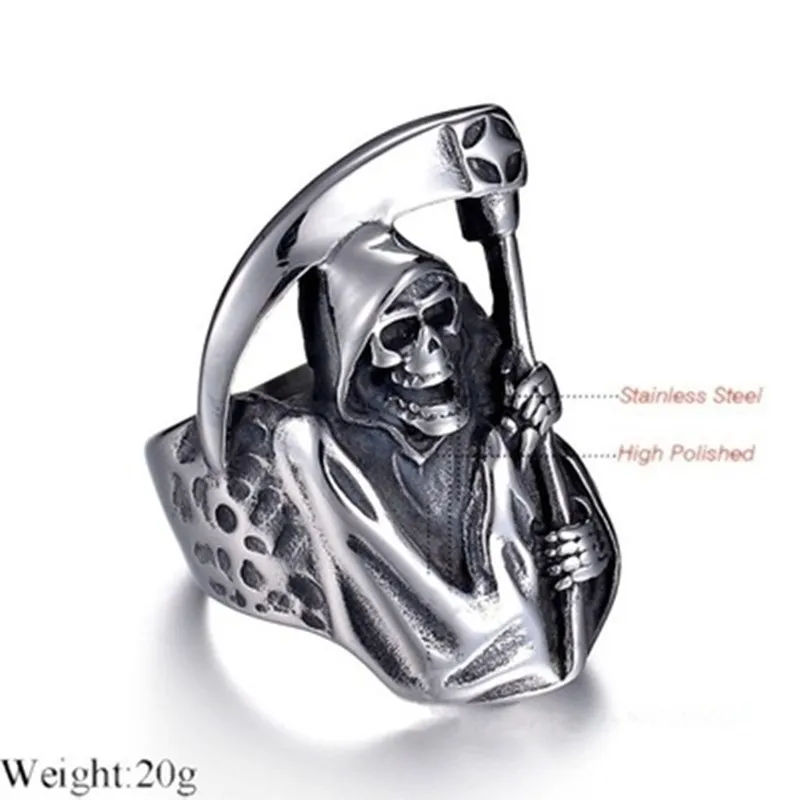 Мужское кольцо в стиле панкхип-хопМуэрте, Винтажное кольцо с агрессивным черепом, смерть с косой, хороший подарок на день отца вечерние вечерняя бижутерия