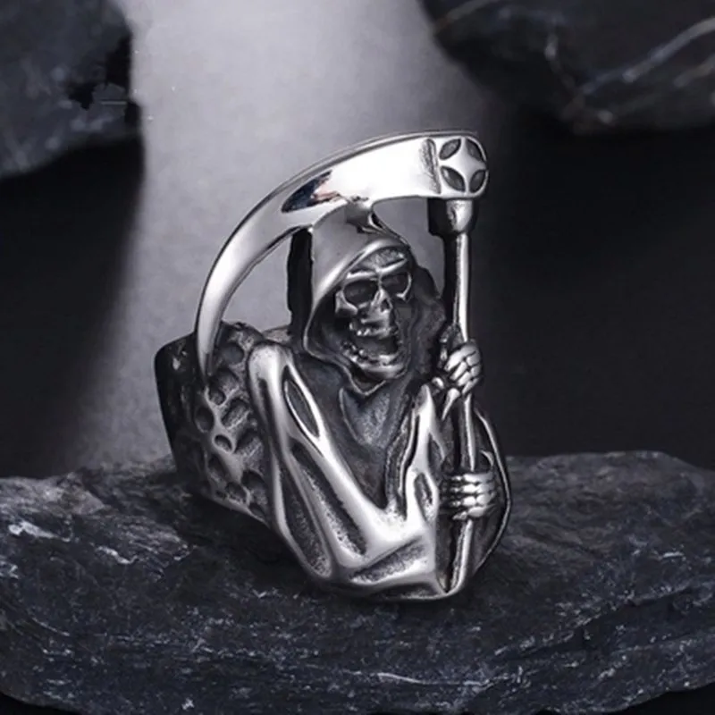 Мужские Винтажные кольца в стиле панк с изображением серпа смерти