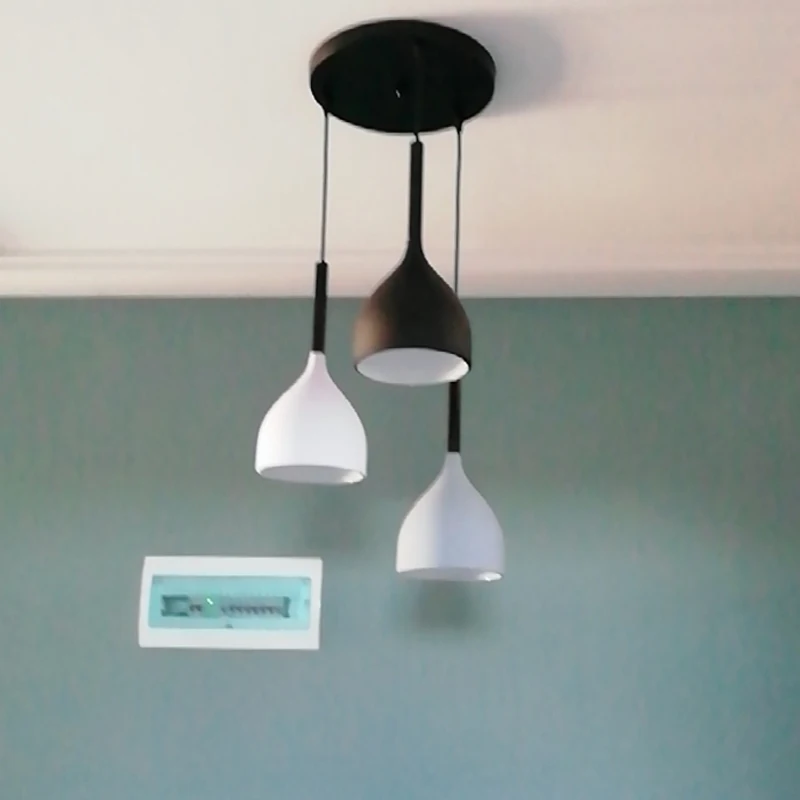 Кабель: 1,0 мЦвет: черный/белый/серыйМатериалы: алюминий и деревоДержатель лампы: E27 (не входит в комплект)Напряжение: 110-240 В, подходит для всех странПрименение: столовая, спальня, прихожая, гостиная и так далее.