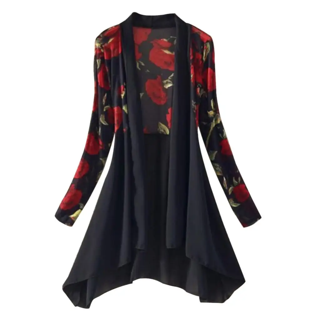 Женская одежда с длинным, шифоновая блузка, рубашка для девушек, женский кардиган солнцезащитный крем рубашки Дамская с цветочным принтом Блузки 5 Цвета