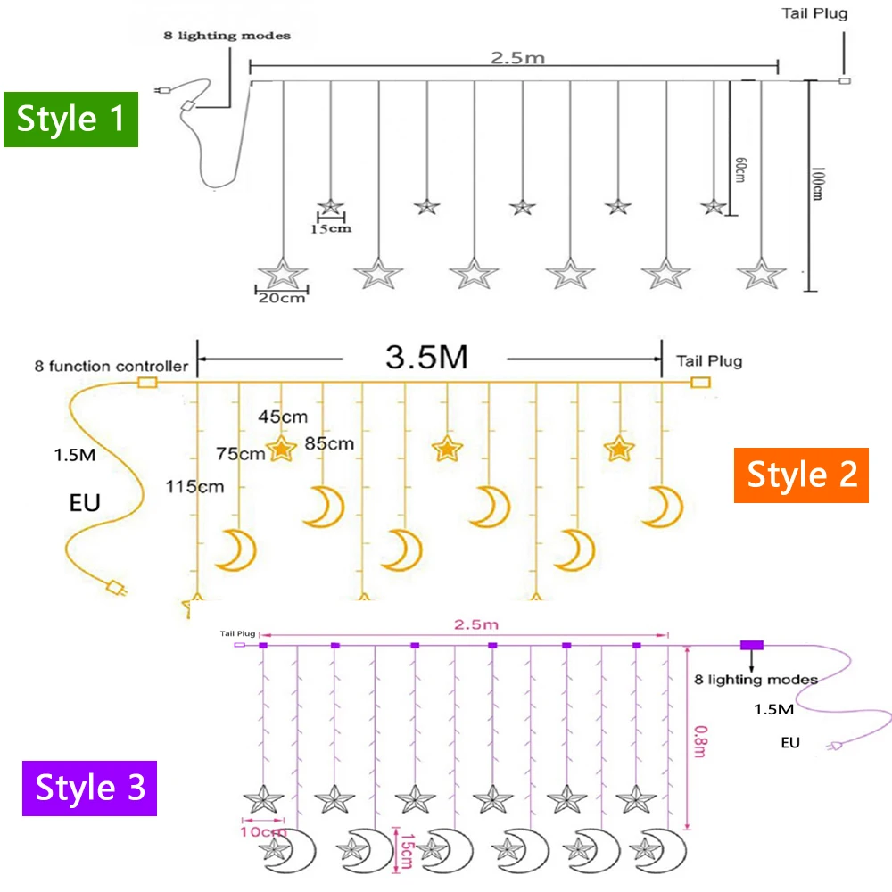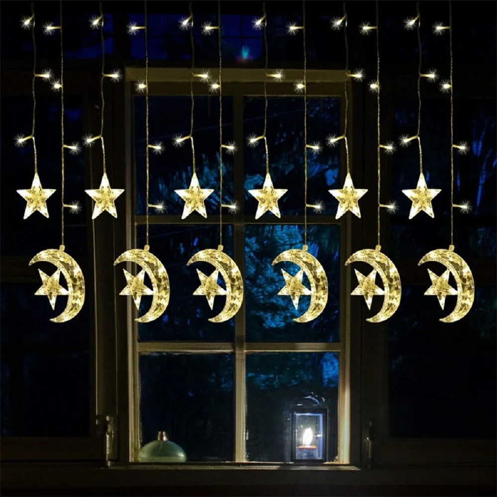 СВЕТОДИОДНАЯ Гирлянда-занавес в виде Луны, звезды, пентаграммы