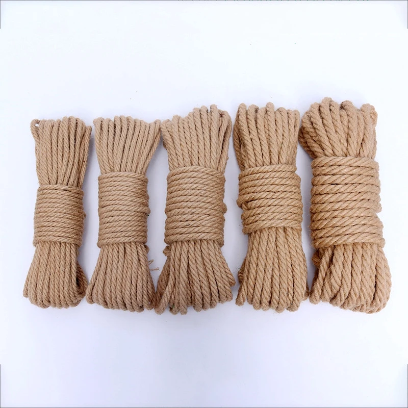 Название продукта: веревки из натурального джута, плетеные шнуры для поделок ручной работы, украшения дома, Когтеточка для кошек, игрушки для скалолазания, веревки для связывания Материал: пенька Размер: ширина 4 мм/5 мм/6 мм/8 мм/10 мм/12 мм Цвет: как на фото Спецификация: 1 лот = 10 м/лот Использование для: изготовления различных видов ремесел, включая настенные вешалки, Гобеленовые веревки, ловушки снов, свадебные украшения в богемном стиле и так далее.