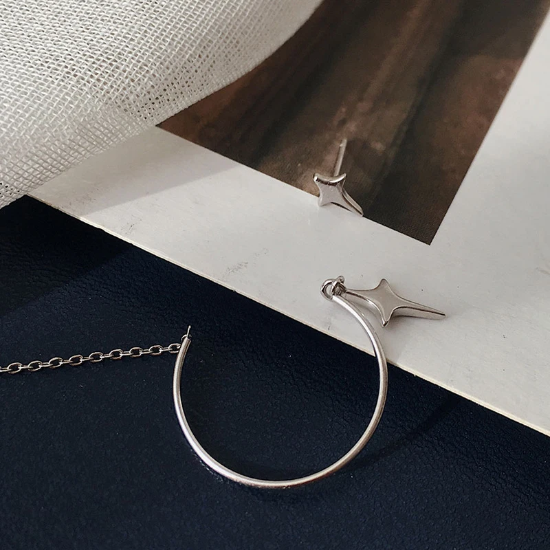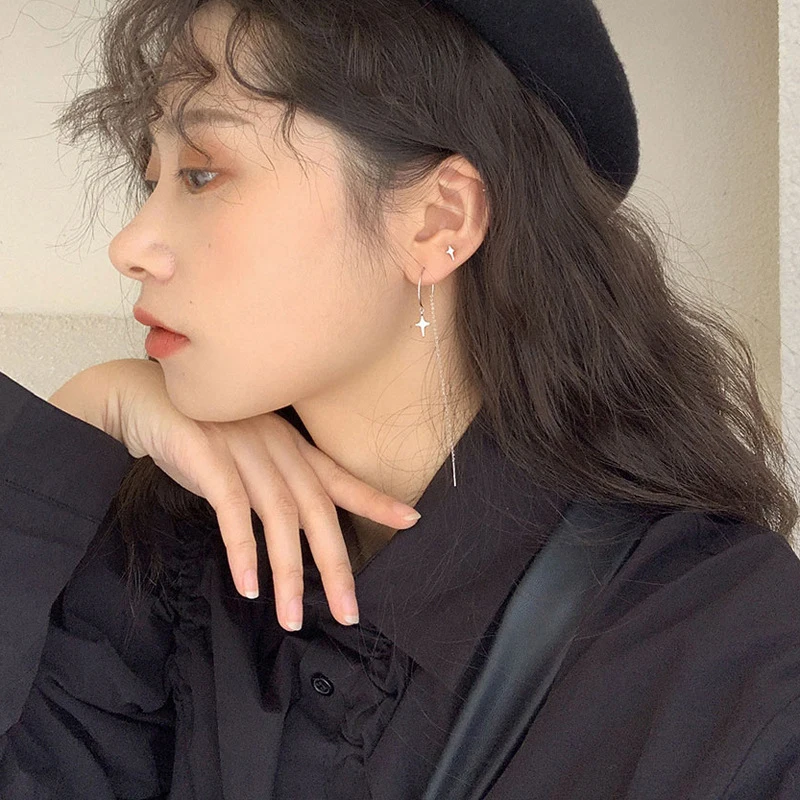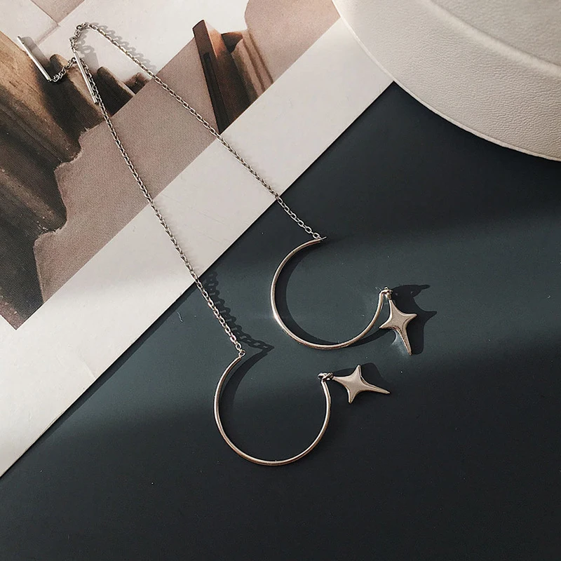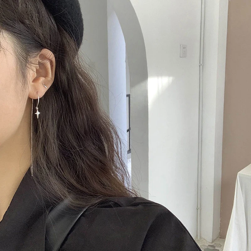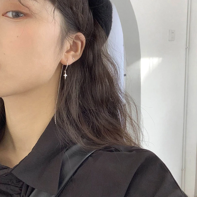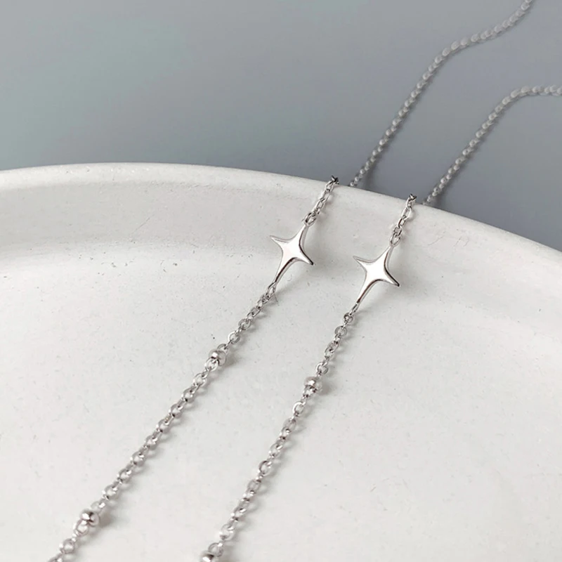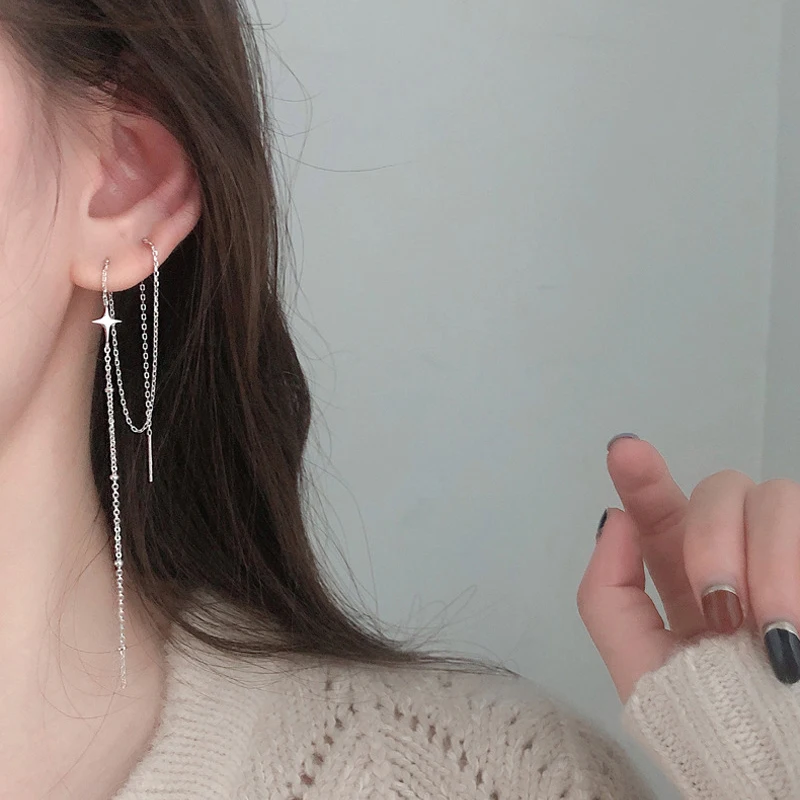 Простые блестящие серьги-гвоздики в форме звезды с длинной цепочкой, серьги с кисточками для женщин, геометрические серьги для пирсинга, ювелирные изделия для вечеринки, подарок для девочки