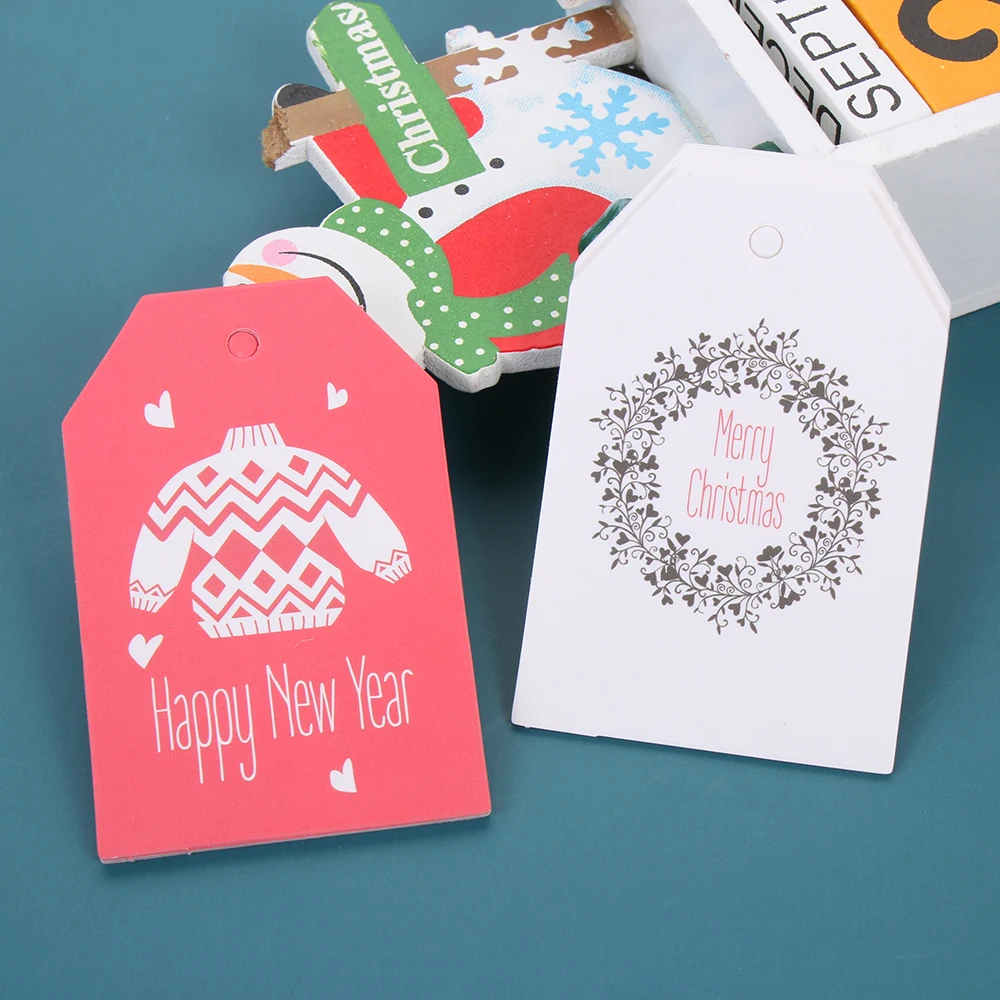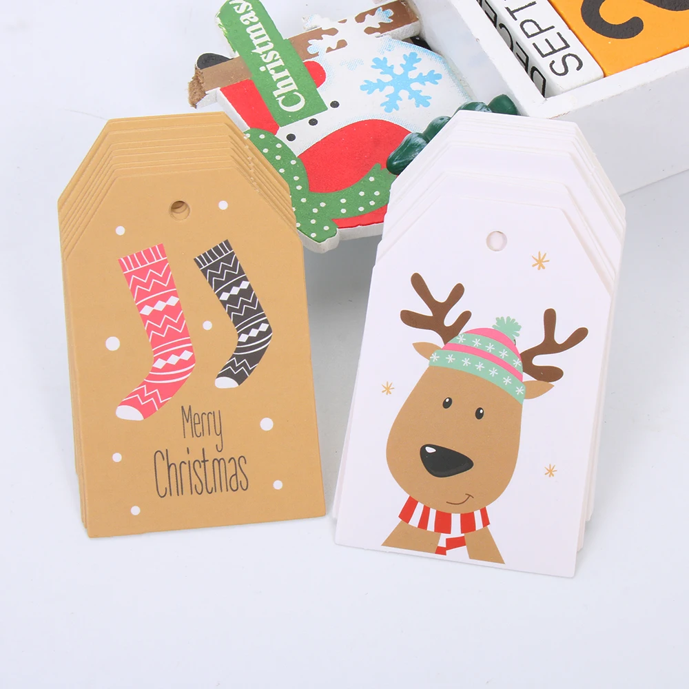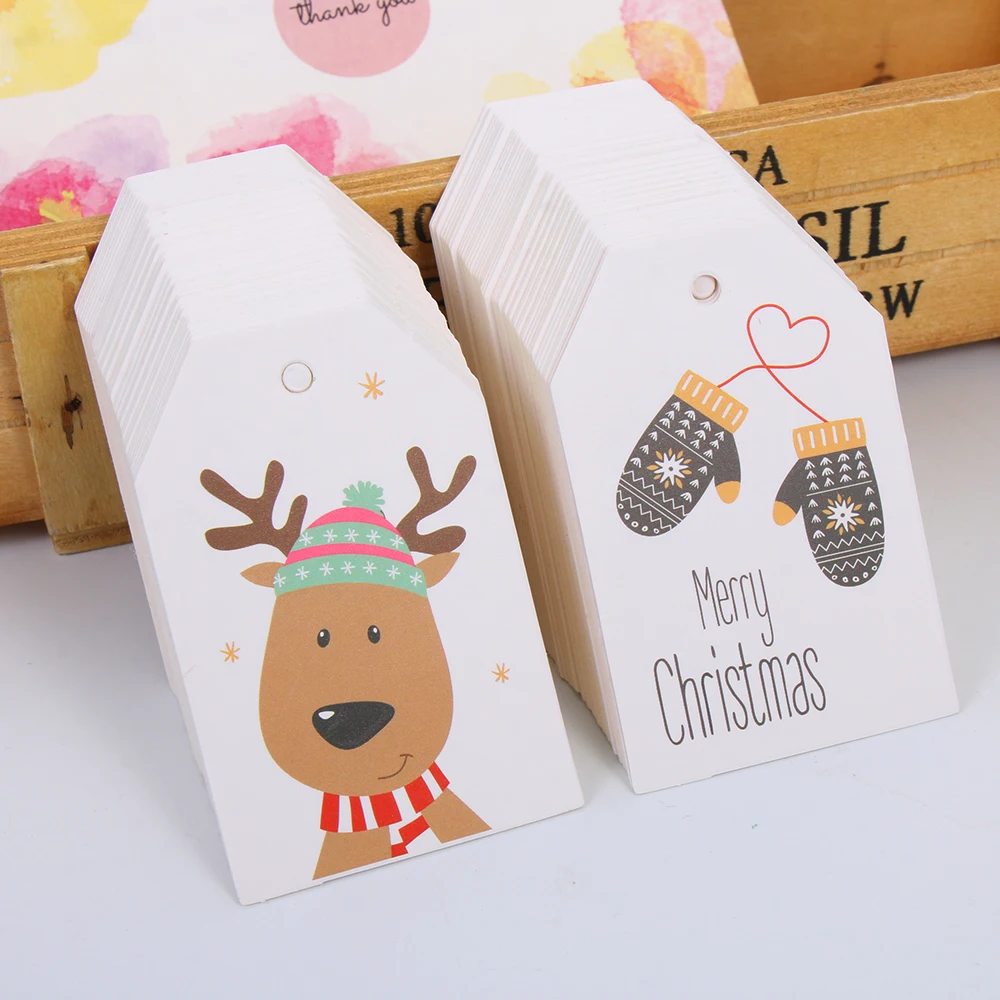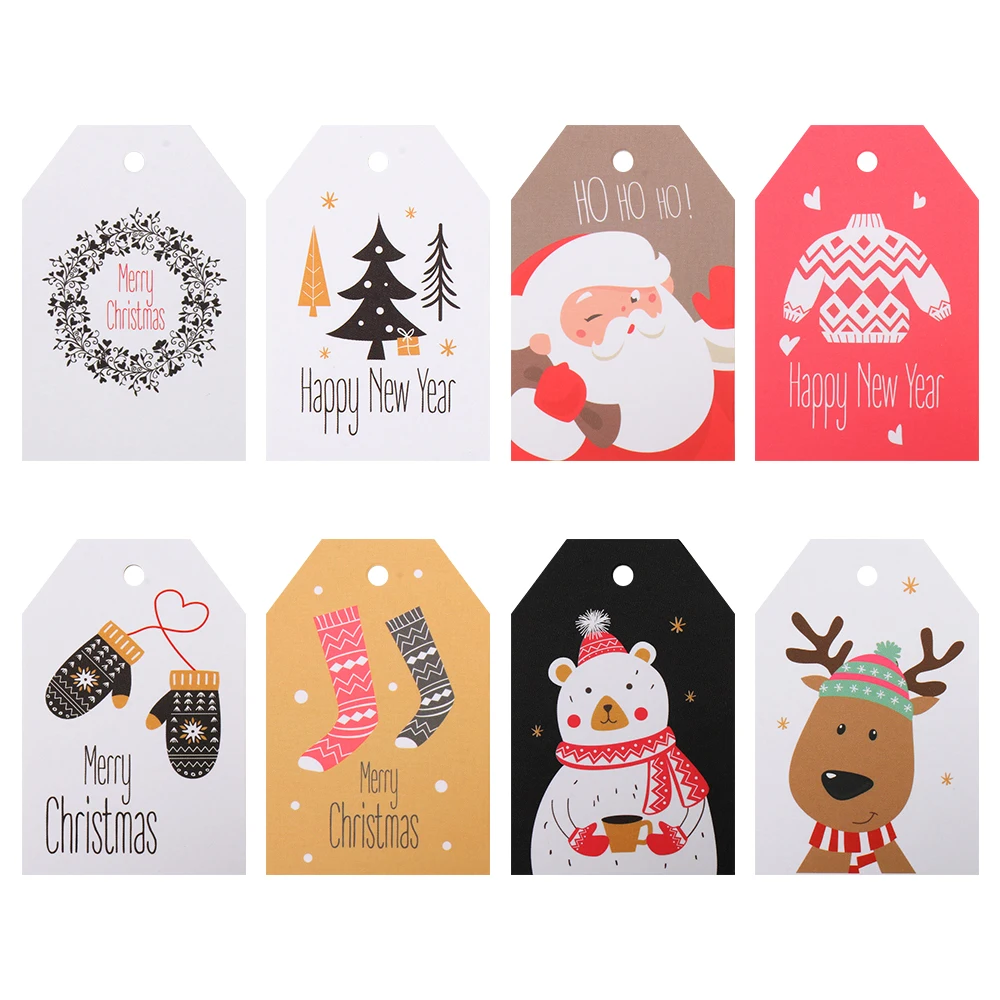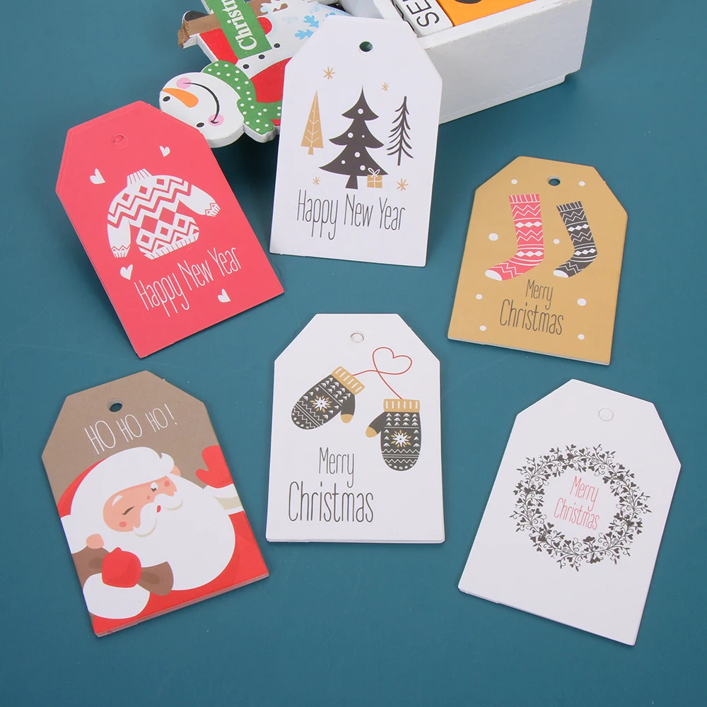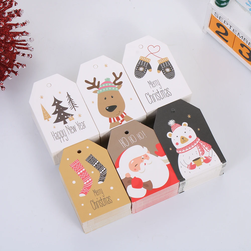 100 шт. DIY крафт-бирки с пеньковой нитью, рождественские этикетки, оберточная бумага для подарков, подвесные бирки, бумажные открытки с Санта-Клаусом, домашние украшения