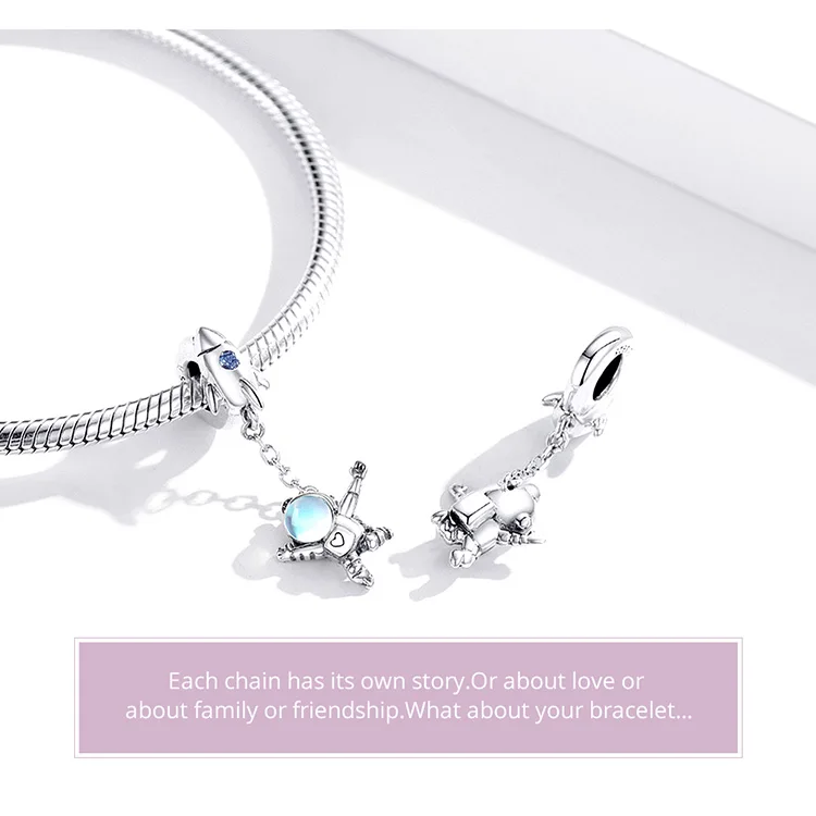 925 серебро оригинальный астронавт ожерелье с подвеской в виде кулон в форме браслет бусины ювелирных украшений Hand-Made Свадебный подарок для женщин ювелирные изделия делая