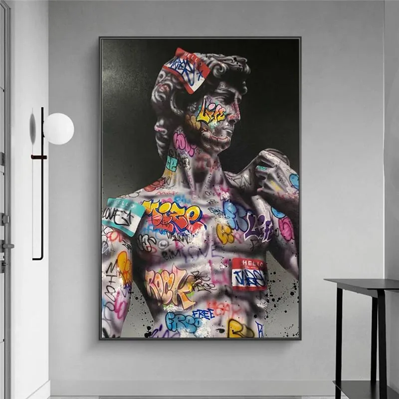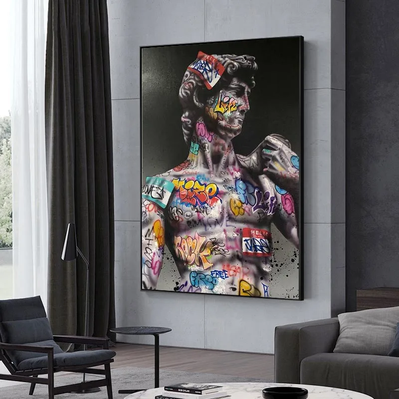 Современная Картина на холсте с граффити, забавная скульптура Давид...
