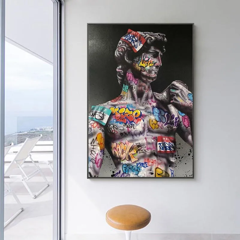 Gaffiti арт Давида на холсте настенные картины художественные плакаты и принты в стиле протестного уличного искусства, Дэвид Скульптура фотографии Настенный декор картины