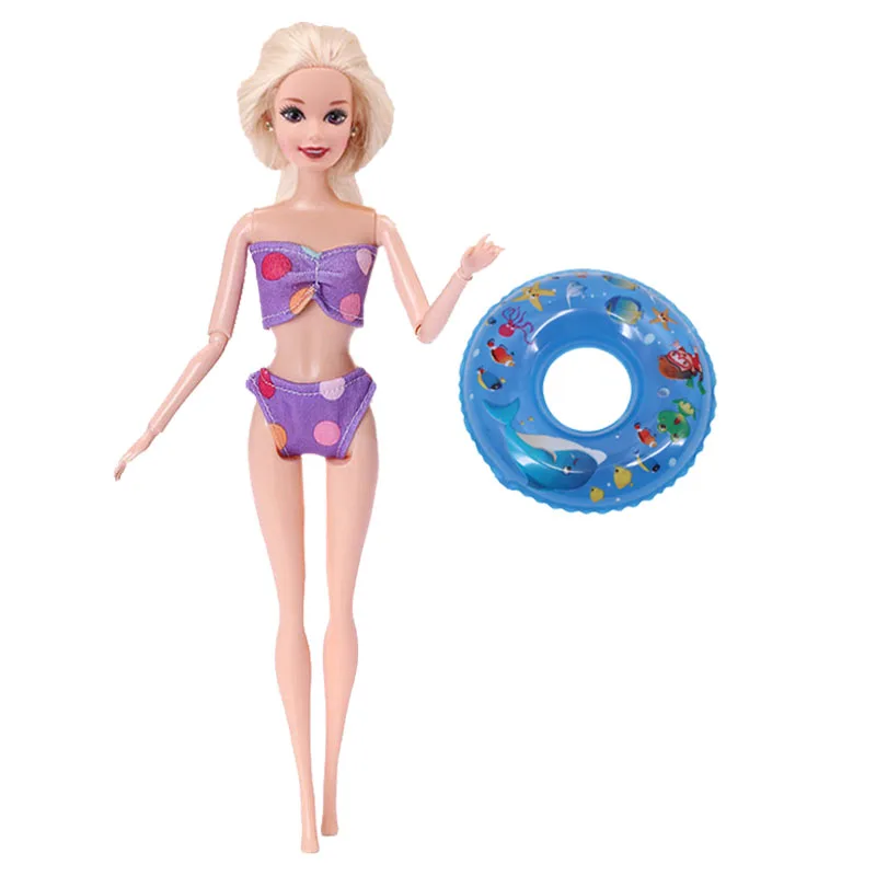 Бесплатная доставка, 2 шт. = 1 Кукольный купальник, пляжная одежда для купания, бикини, купальник + 1 плавающий буй, спасательное кольцо для куклы-Барби, игрушка для девочек