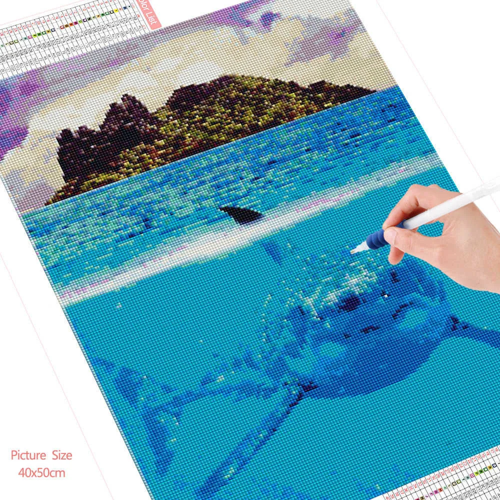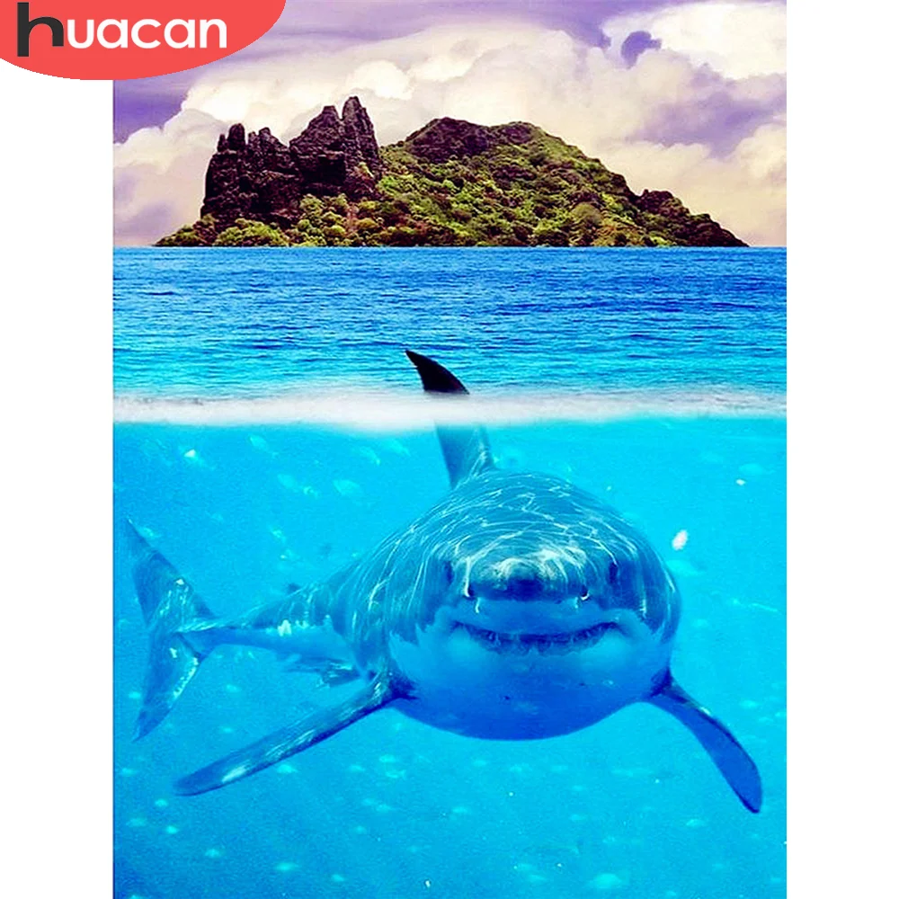 Алмазная живопись HUACAN, животное, Акула, вышивка крестиком, полноразмернаяКруглая Мозаика, ручная работа с океаном, подарок для домашнего искусства