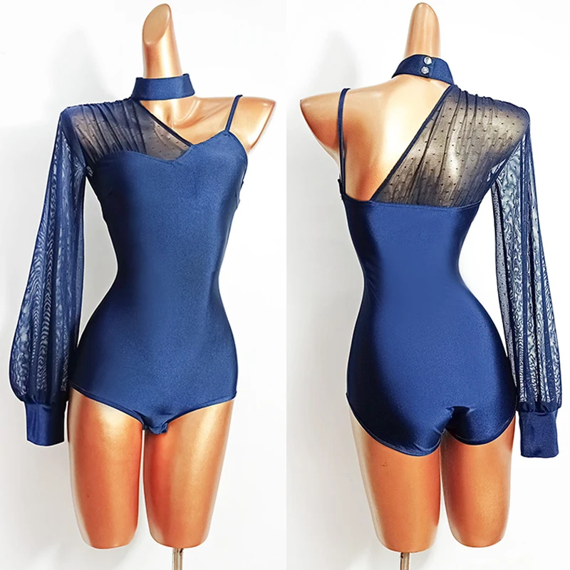 Женский трико на одно плечо с рукавами-баллонами, топ для латинских танцев, одежда для соревнований по латинским танцам, VDB2782