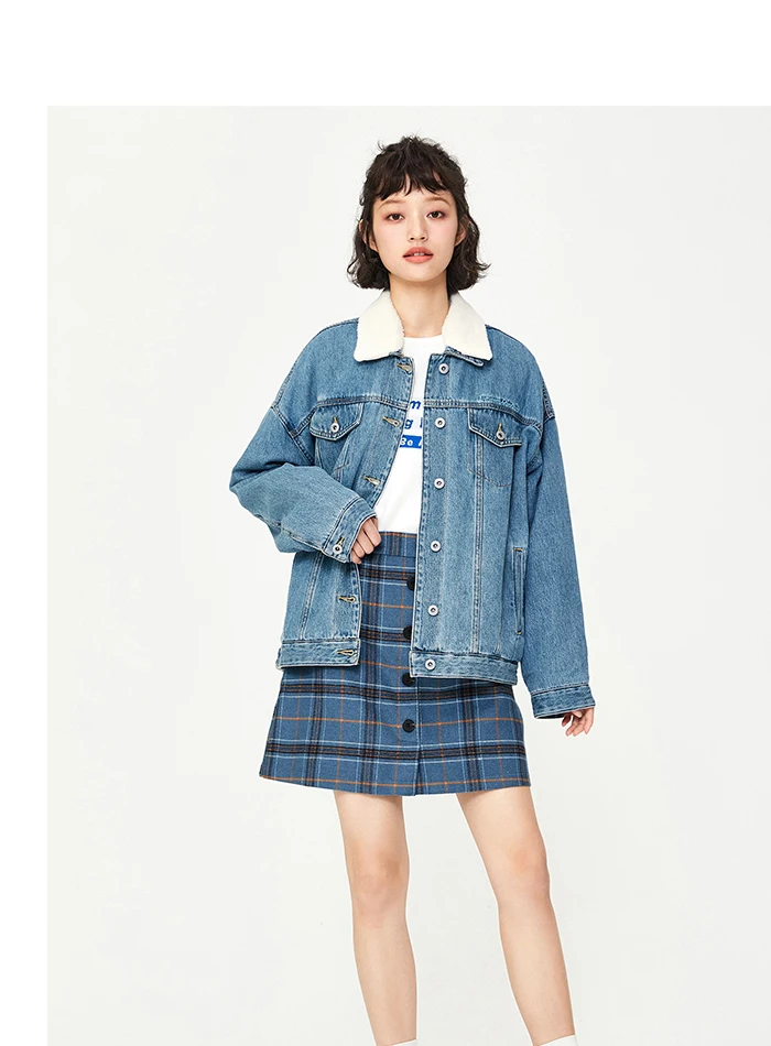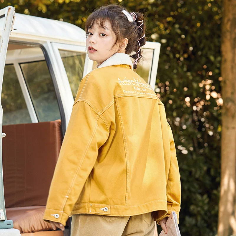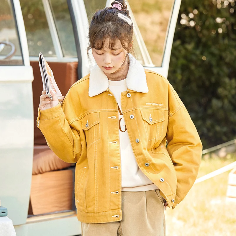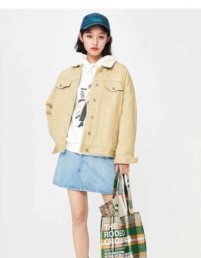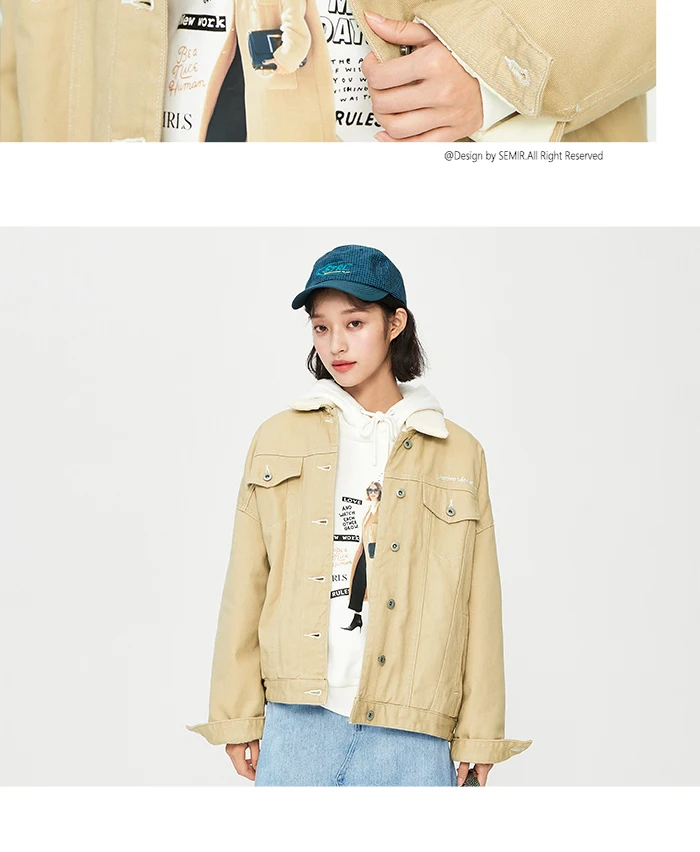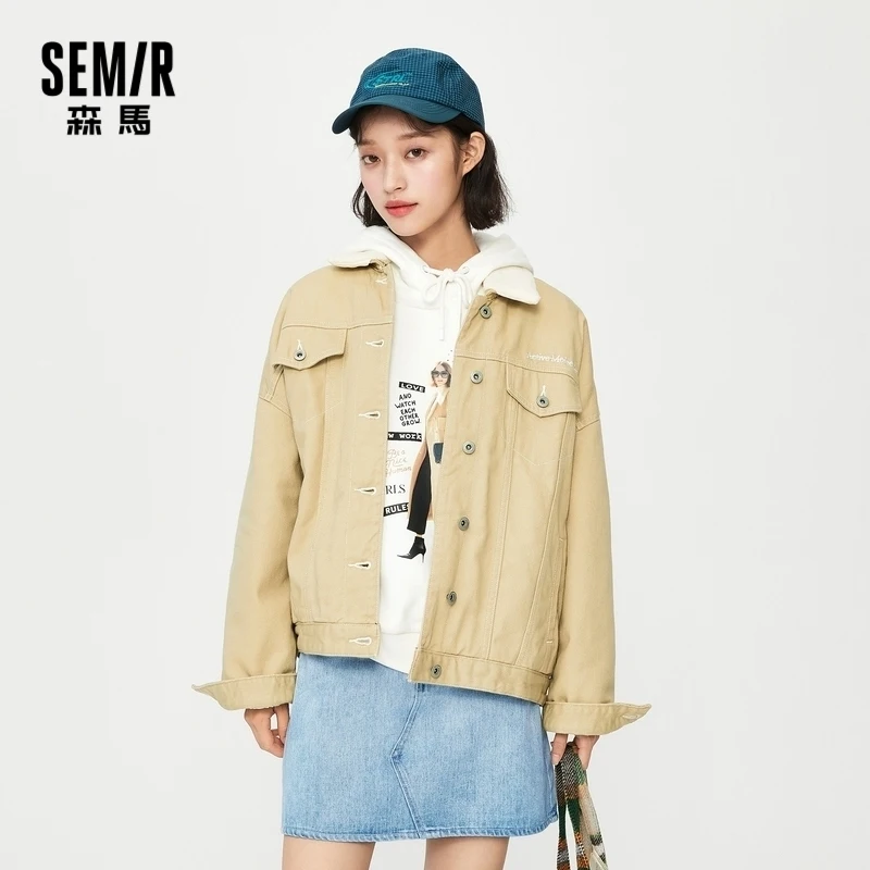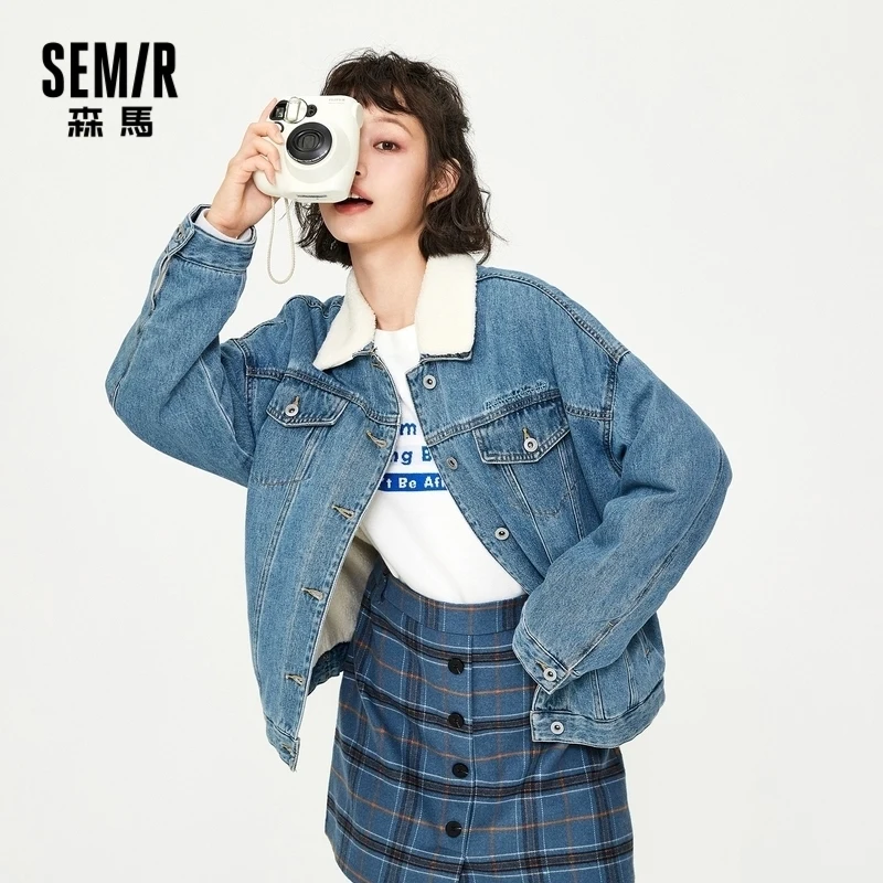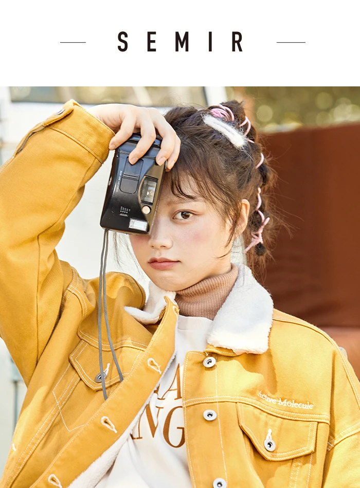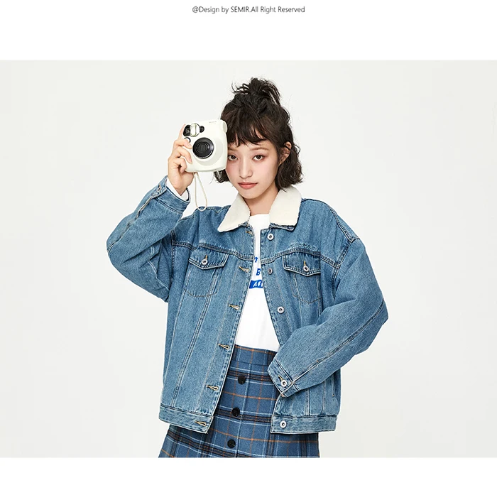Куртка SEMIR женская джинсовая, свободная короткая стильная Толстая теплая верхняя одежда из искусственной овечьей шерсти, с вышивкой, осень 2020