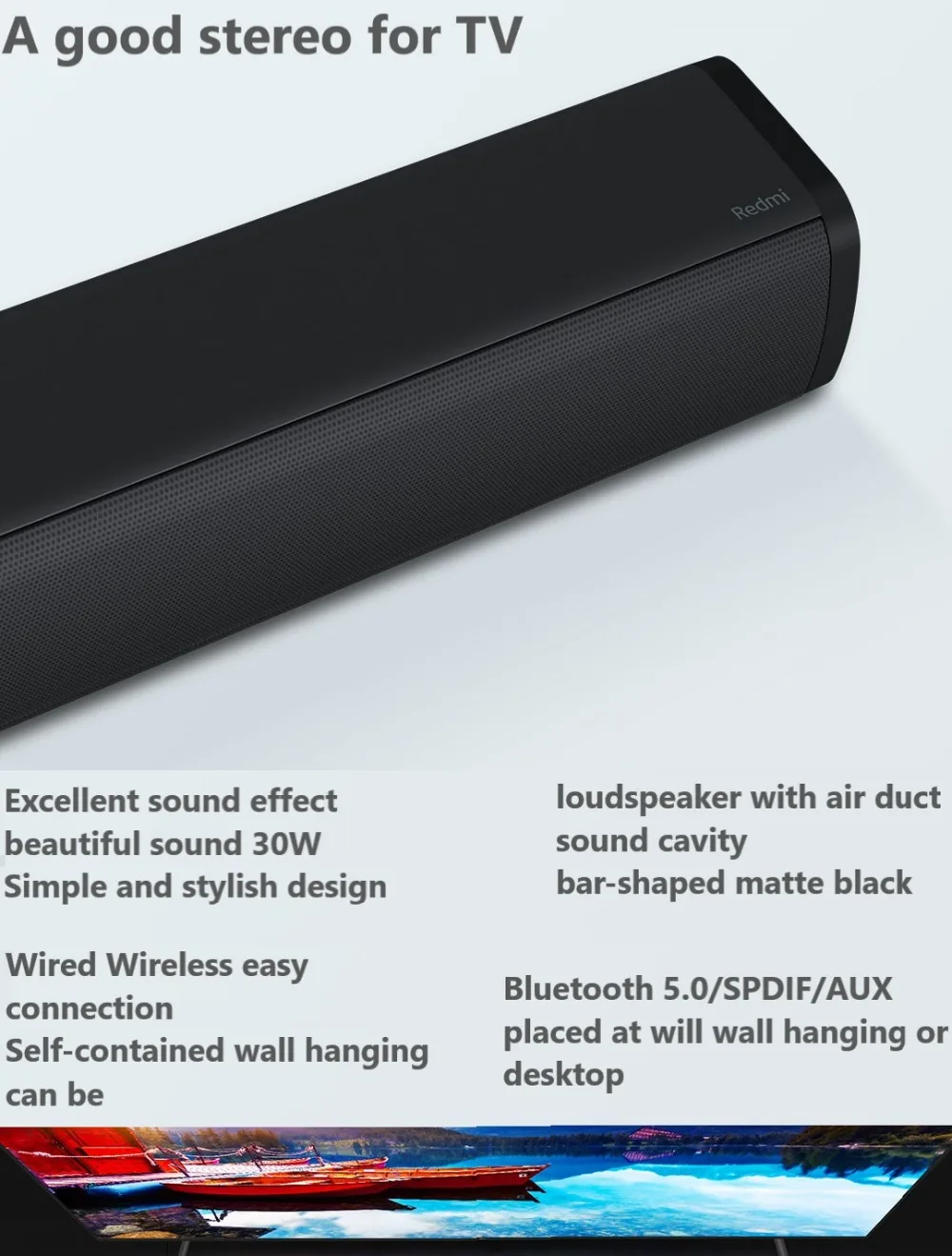 Саундбар Xiaomi Redmi TV беспроводной, Bluetooth 5,0, 30 Вт