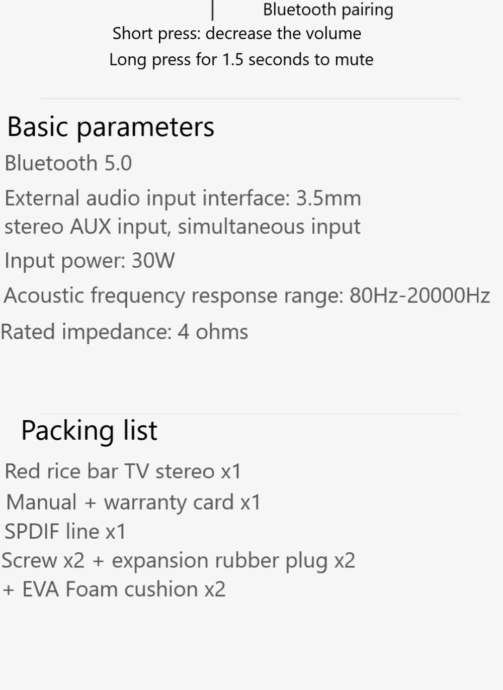 Посылка: 1 x стерео телевизор, 1 x Руководство пользователя в Китае, 1 x Кабель SPDIF, 2 x винт, 2 x расширительный винт, 2 x поролоновая прокладка EVA