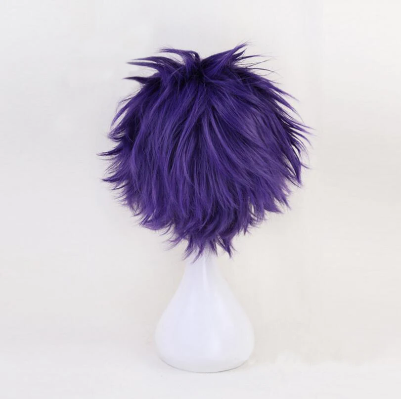 Парик для косплея «Моя геройская Академия», короткие фиолетовые парики из синтетических волос и шапочка