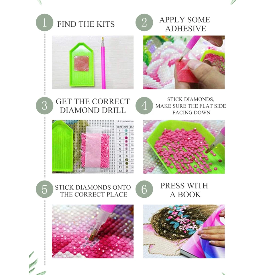 1 полный набор из разноцветных алмазных картин 5D (рамки не входят в комплект поставки) 1 набор Инструменты для вышивки картин со стразами (ручка, лоток, клей, стразы)