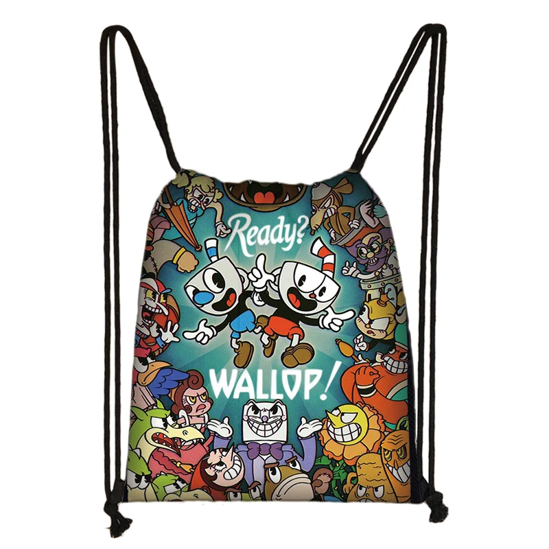 Cuphead Game Mugman мультяшный Детский рюкзак со шнурком шоппинг школьные дорожные вечерние сумки подарок 38*32 см