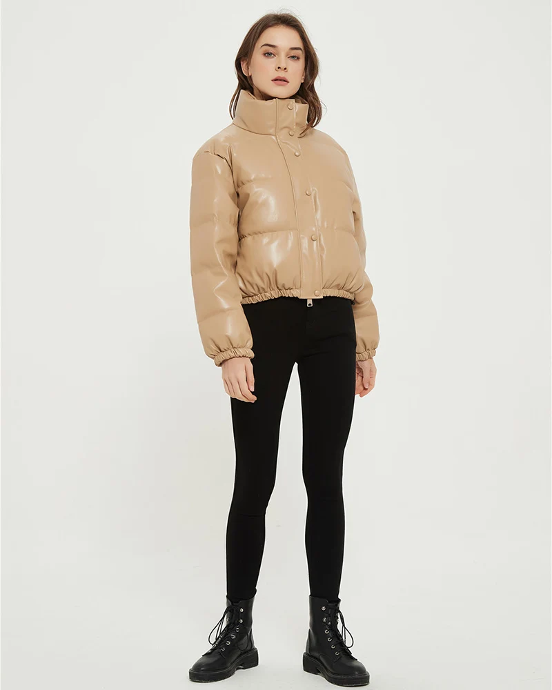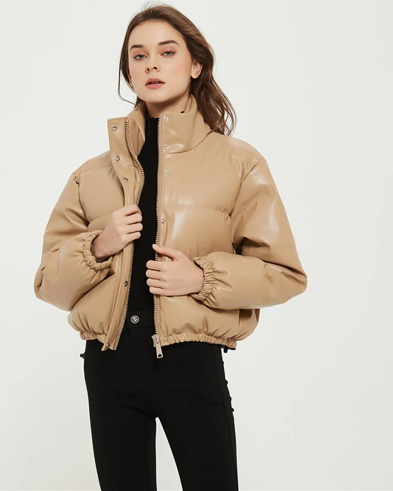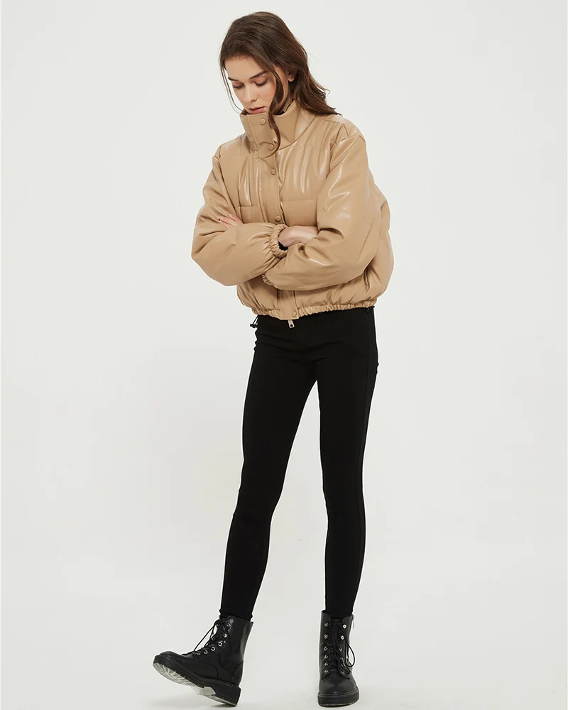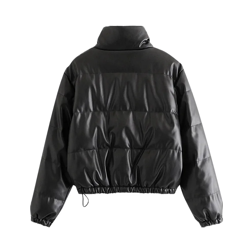 Куртка женская из искусственной кожи, с длинным рукавом и карманами