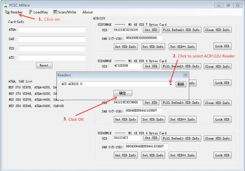 Обычно Используйте ACR122u и наше программное обеспечение для записи UID.