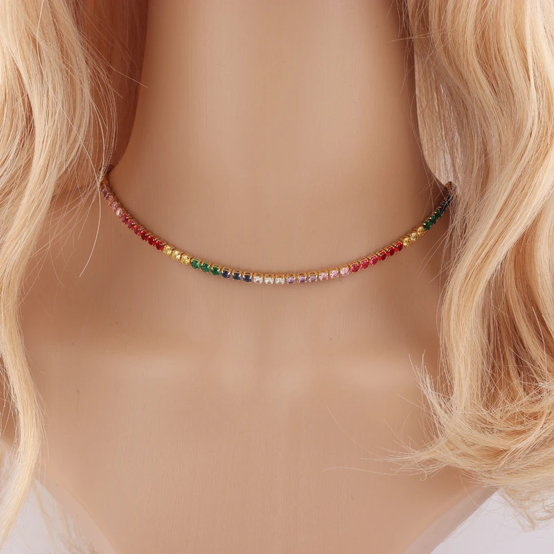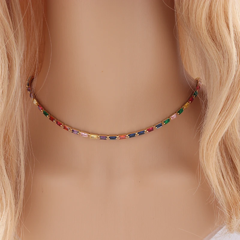 Теннисная цепь с фианитами Женская, пикантное крошечное украшение с роскошным радужным фианитом, разноцветное ожерелье 35 + 5 см, сверкающее многослойное Ювелирное Украшение