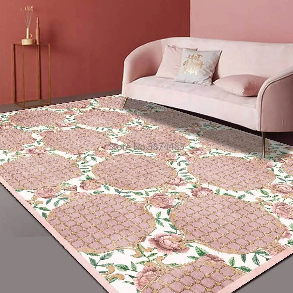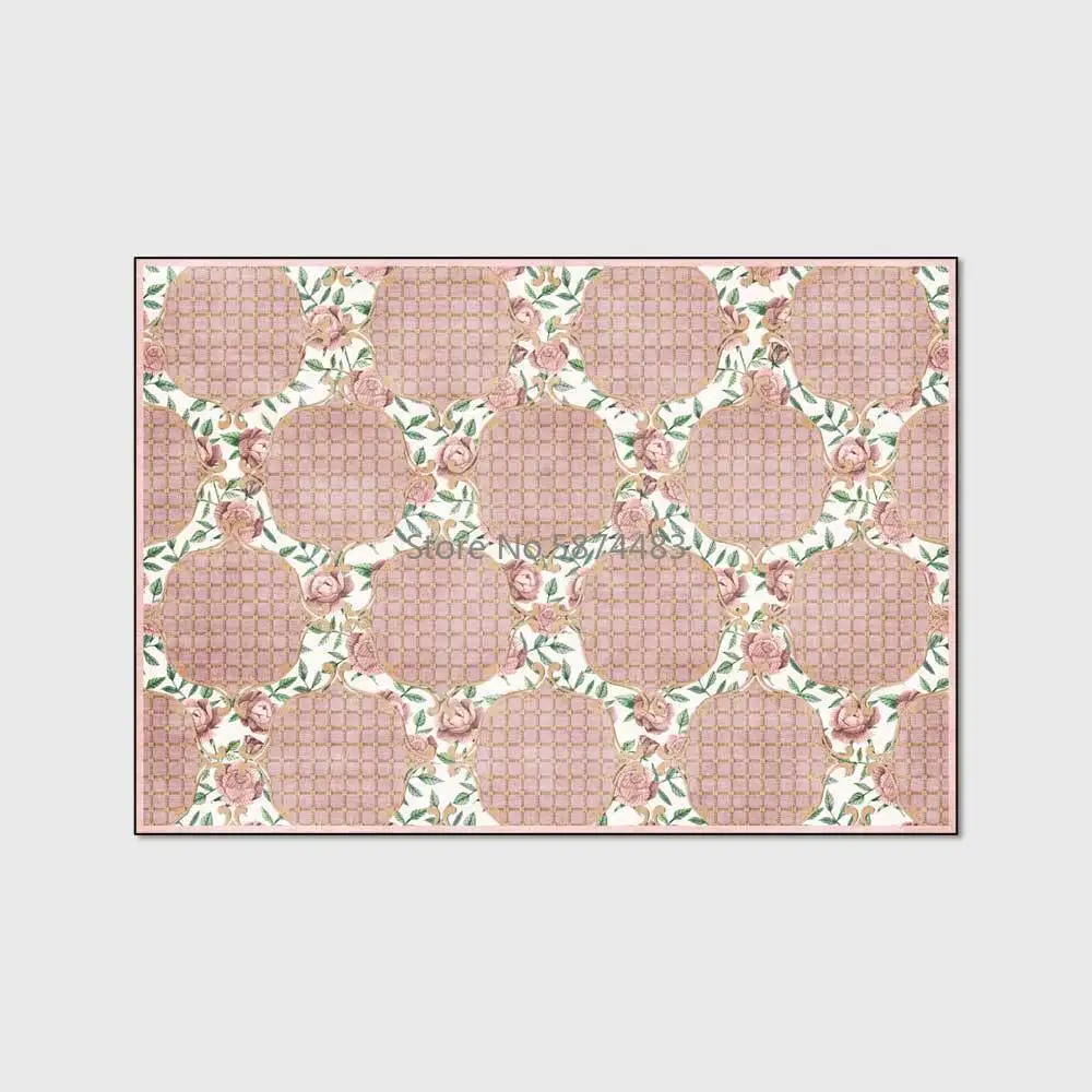 Модные и свежие розовые напольные коврики для гостиной в европейском стиле с цветочной рамкой для девочек, прикроватный коврик для спальни