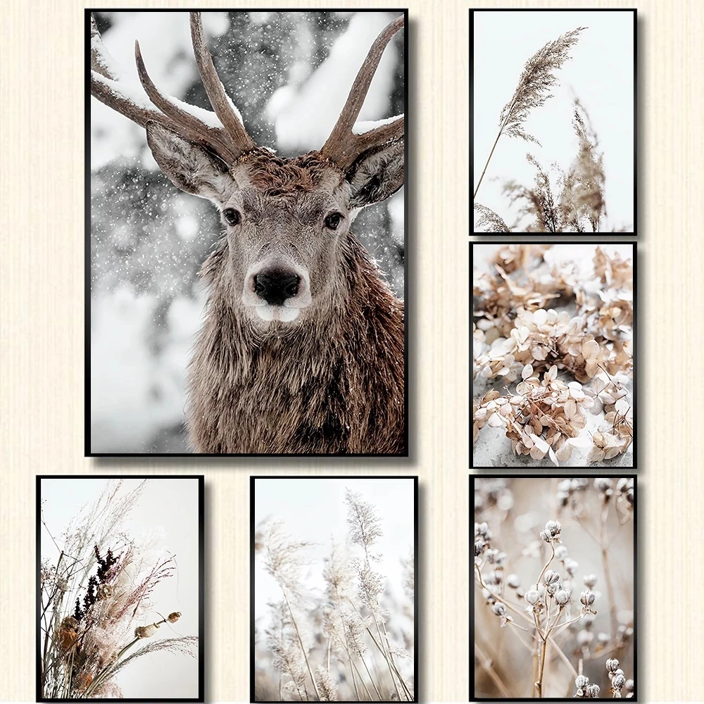 Букет стены скандинавский холст картины Гортензия прут в Корейском стиле художественные плакаты и принты пейзаж с оленем картинки для домашнего декора