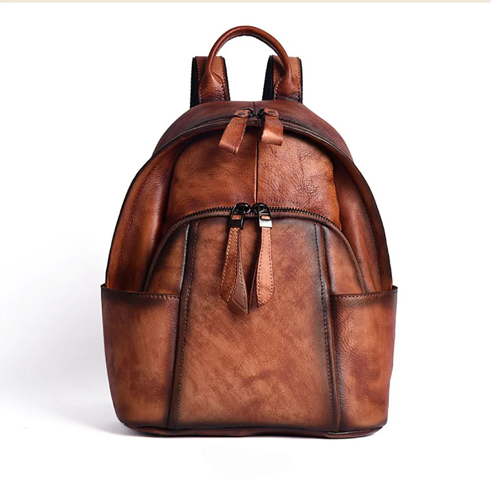 Женский рюкзак из натуральной кожи, винтажный маленький ранец из во...