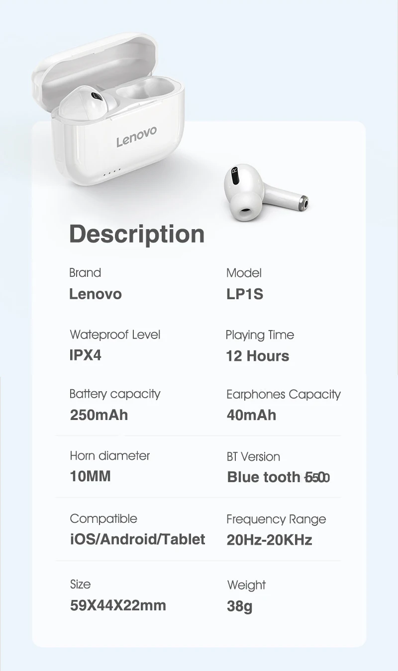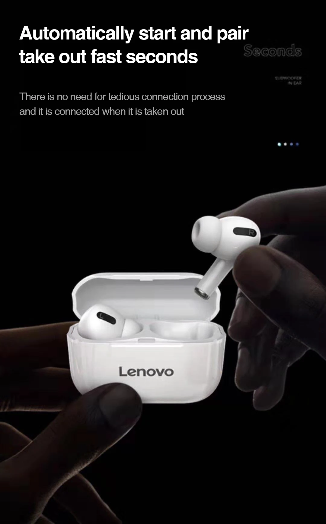 TWS-наушники Lenovo LP1S, IPX4, водонепроницаемые, беспроводные, Bluetooth 5,0, Hi-Fi, стерео, басы, с микрофоном, громкая связь