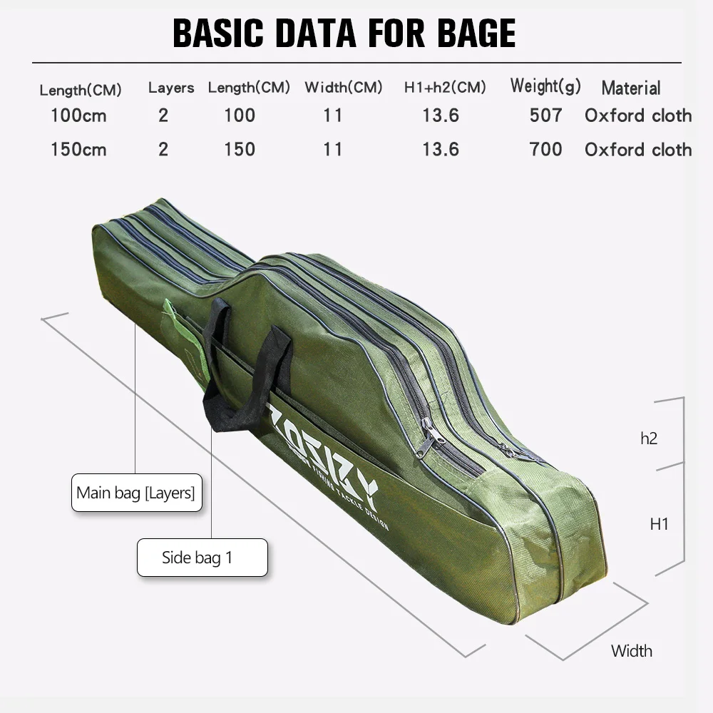 Сумка для хранения удочки из ткани Оксфорд, многофункциональная, 123 слоя, чернаязеленая