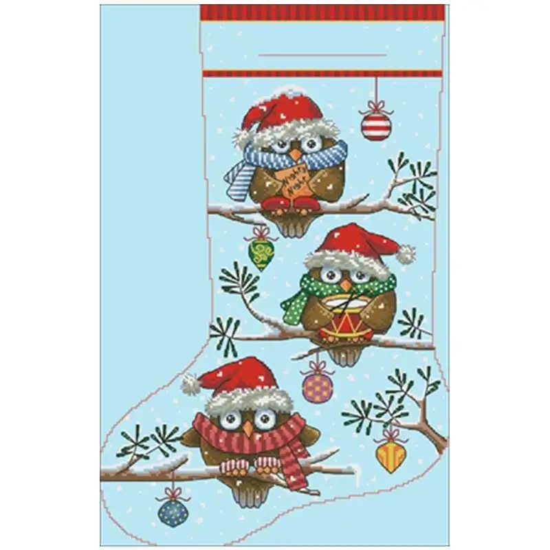 Рождественские носки с совами узоры Счетный крест 11CT 14CT 18CT DI...