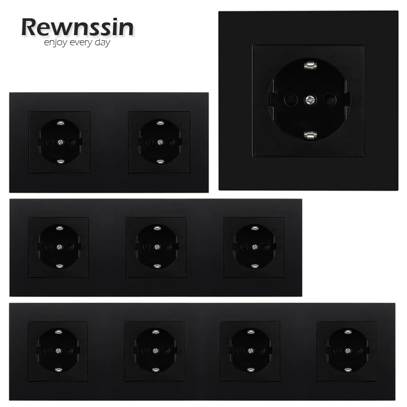 Двойные розетки, тройные настенные розетки стандарта ЕС, несколько розеток, черная пластиковая панель, розетки переменного тока 110-250 В