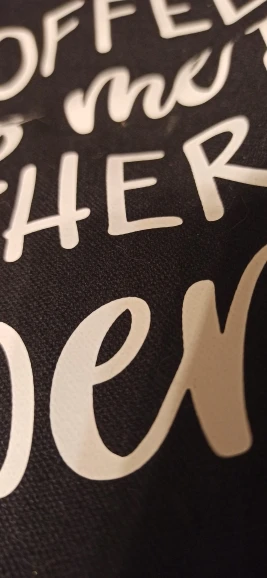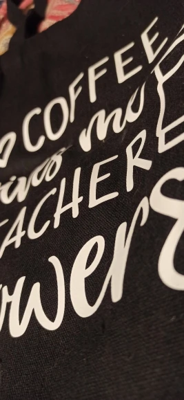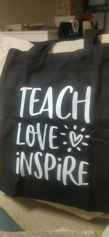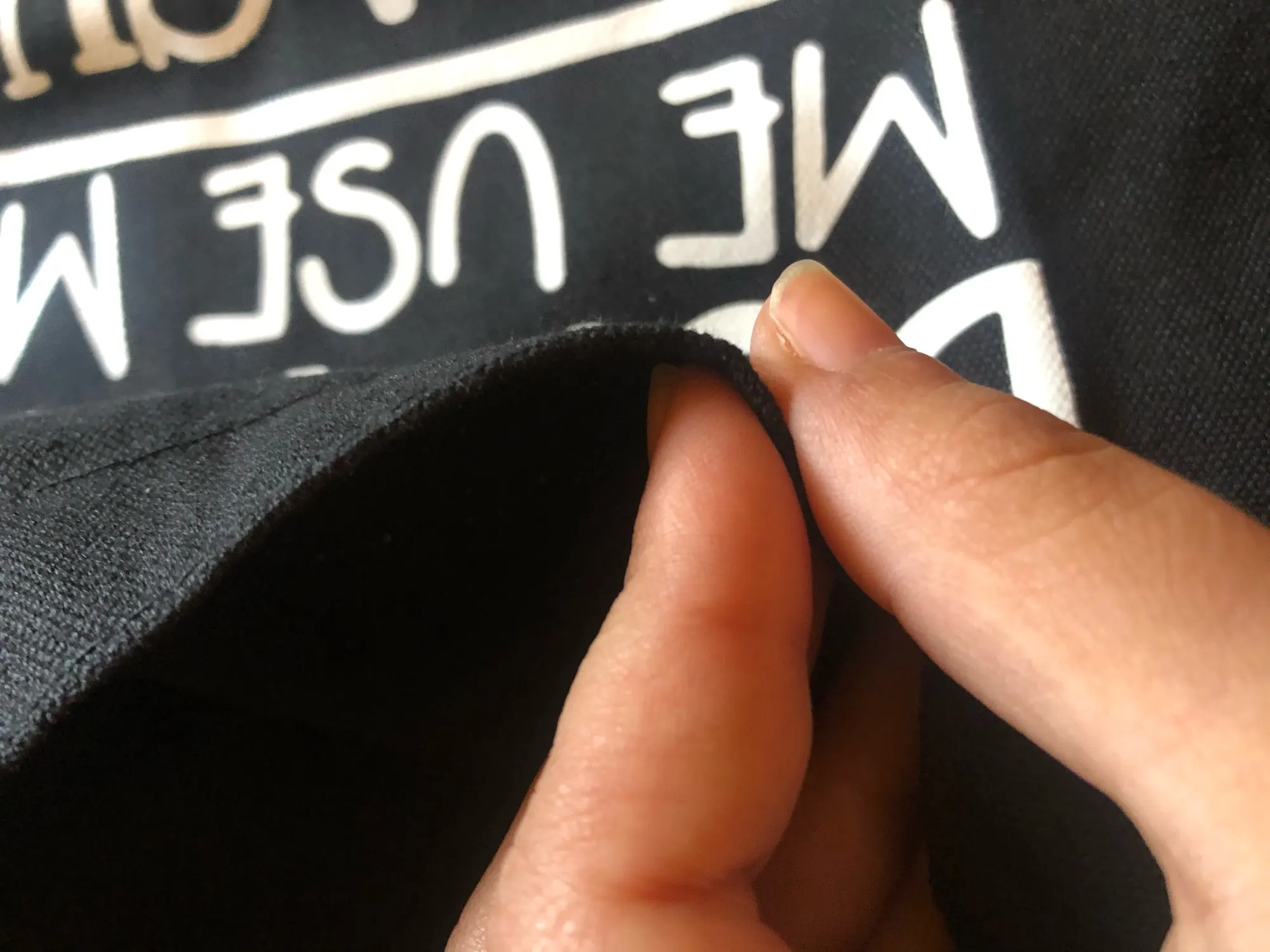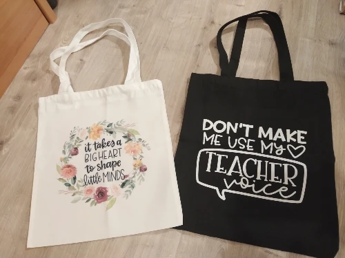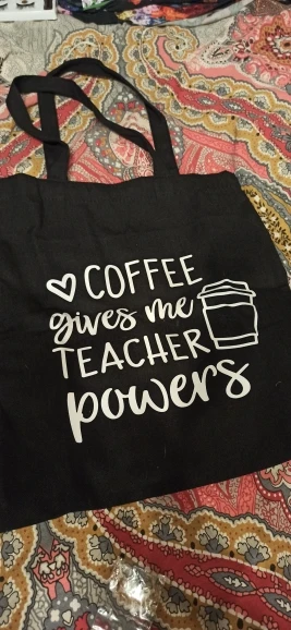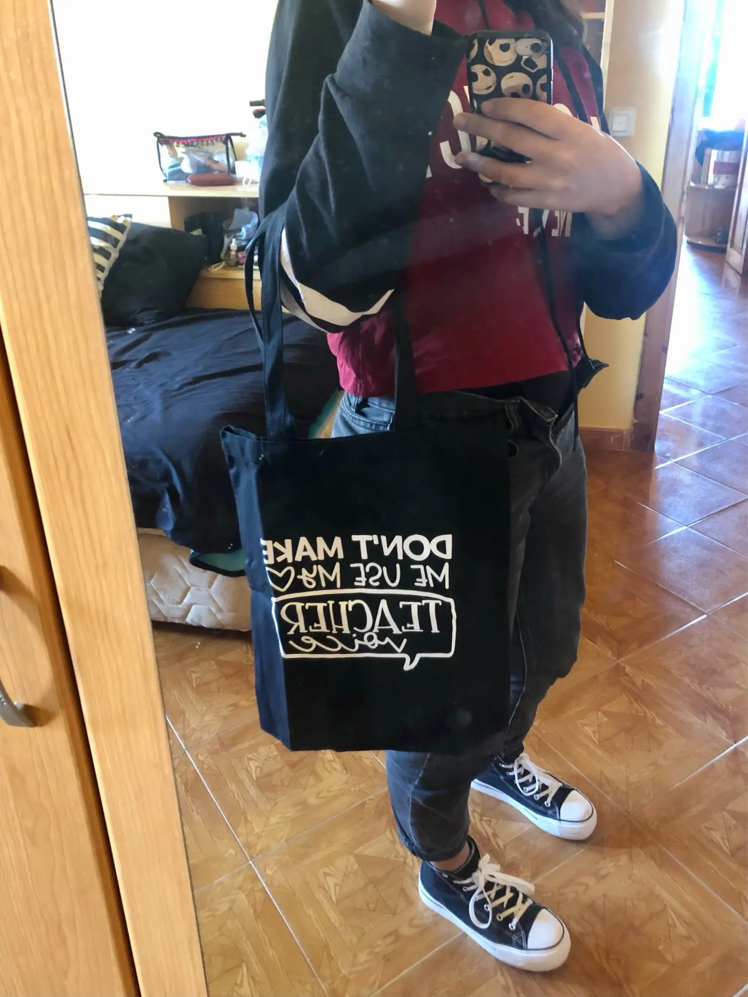 Me parece de muy buena calidad. La tela es dura, y la impresión de la frase está muy bien hecha. Estoy encantada con el producto. Lo recomiendo totalmente.
